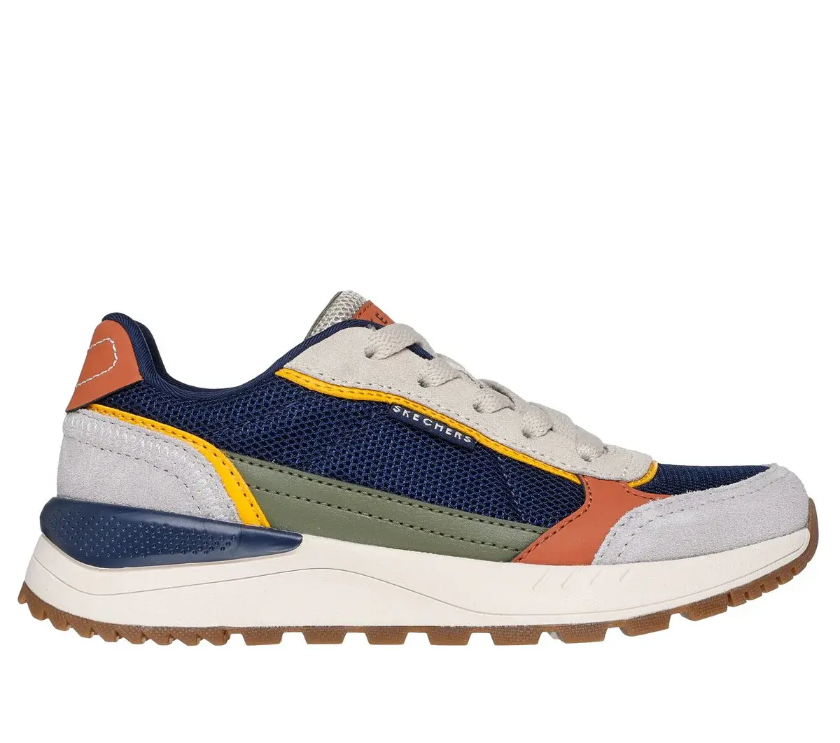 Comfy feet and sporty style make a great pair in Skechers Fury – Modern Ave. This color-blocked lace-up jogger features a mesh, synthetic, and suede overlay upper with a cushioned Skechers Air-Cooled Memory Foam® insole.