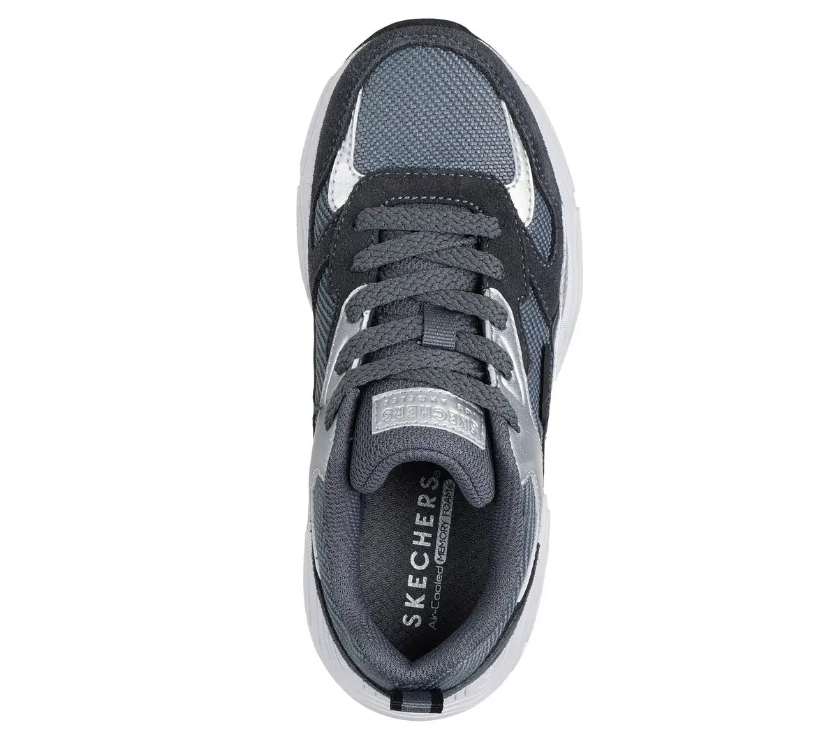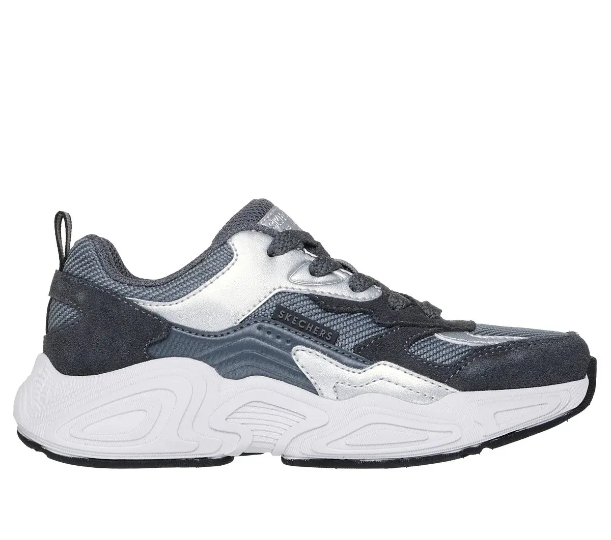 Shake things up on the playground wearing Skecher Street™: Mega-Quake – Shadow Surge. This lightweight lace-up design features a mesh upper with stacked synthetic and genuine suede overlays, a well-cushioned midsole with contour detail, plus a Skechers Air-Cooled Memory Foam® insole.