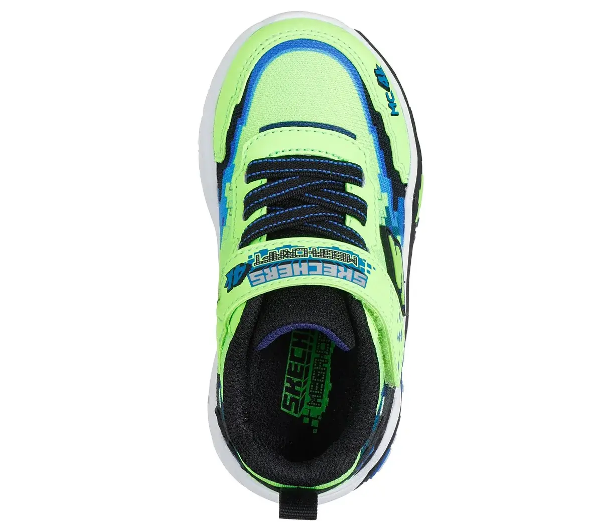 Block-to-block style and sporty comfort pair up in Skechers Mega Scene. This thematic Mega-Craft® design is made with a Skechers adaptive closure and features a pixelated print upper with synthetic overlays, stretch laces, an adjustable instep strap, and a fun tech-piece midsole.