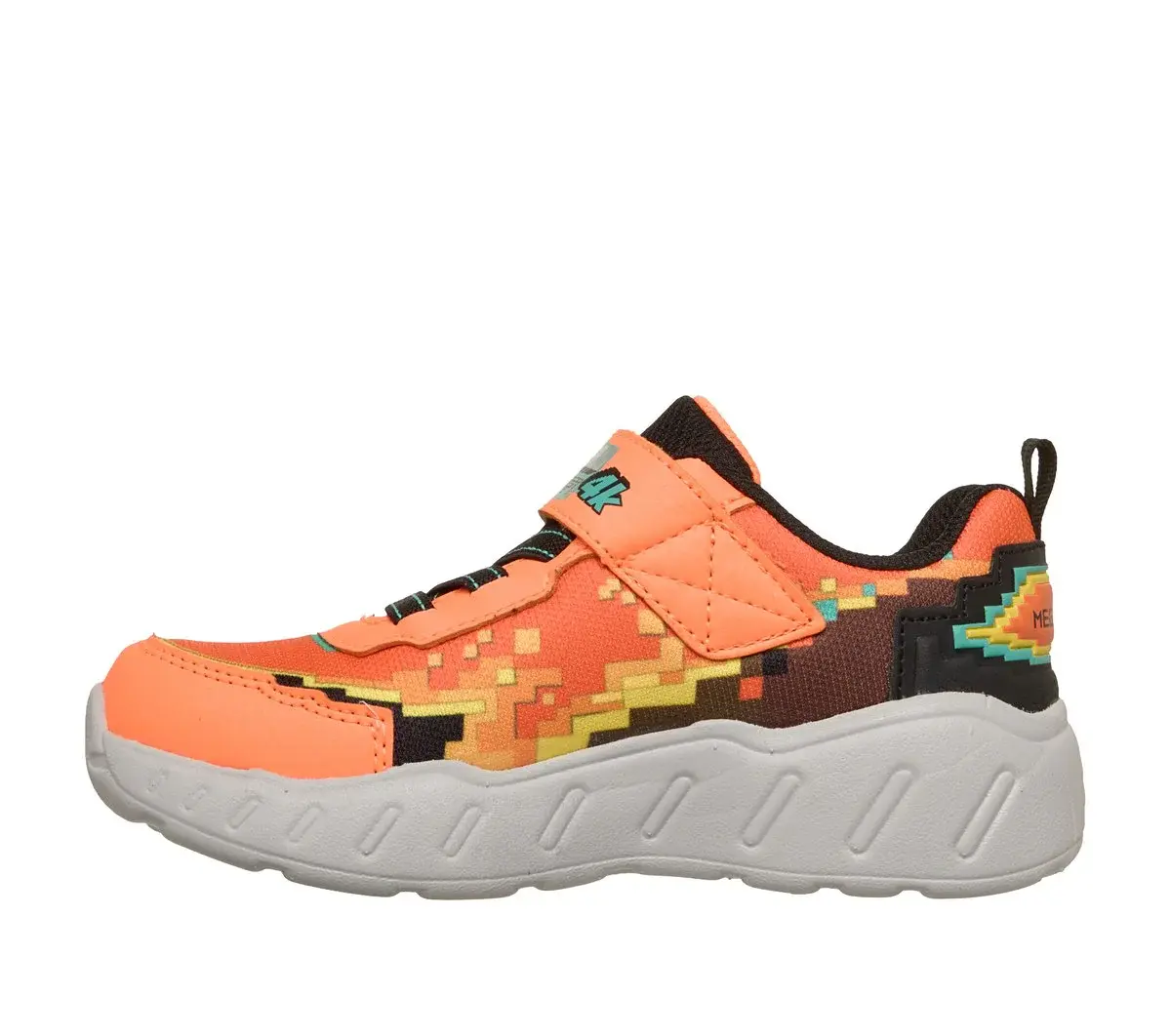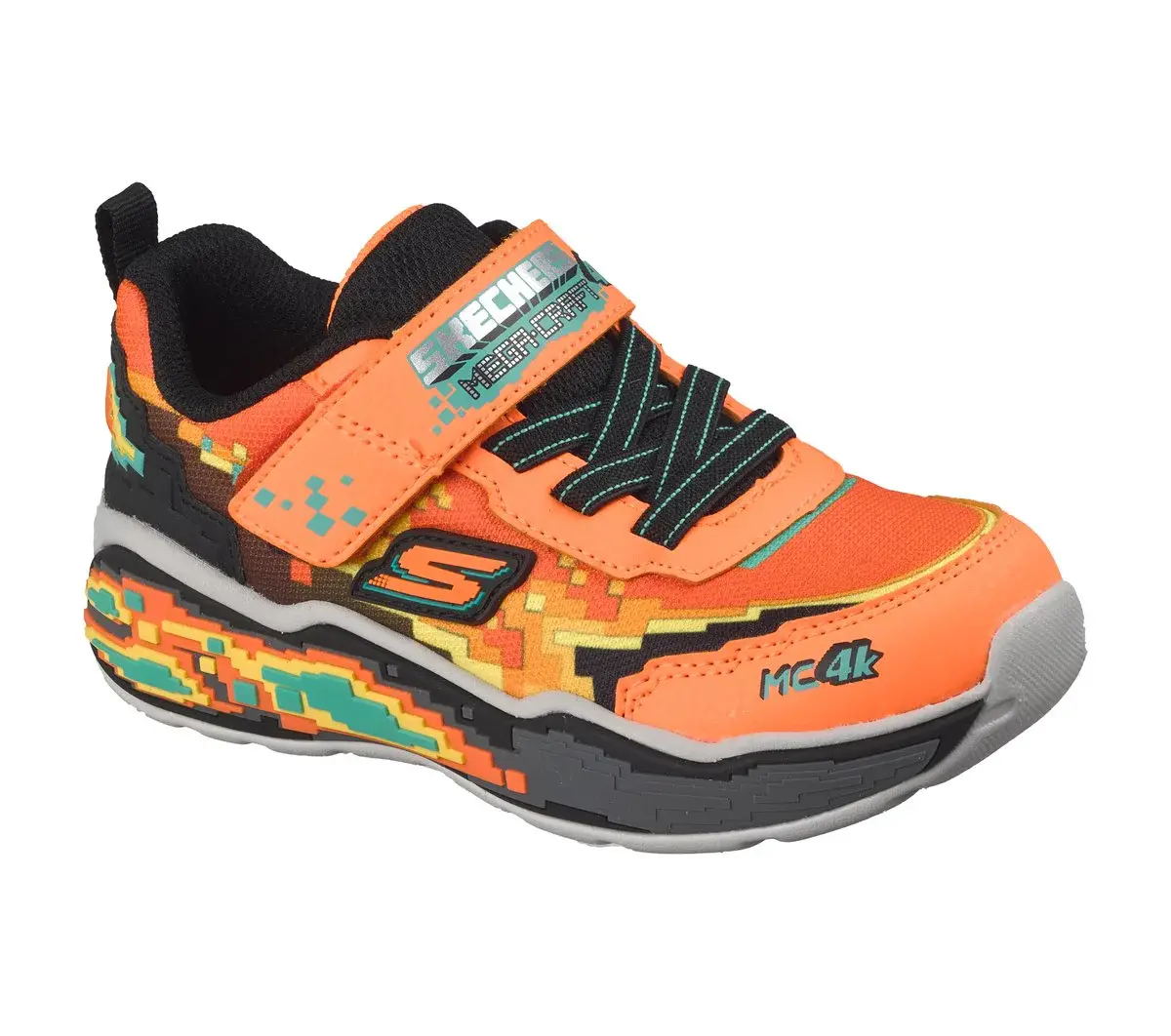 Block-to-block style and sporty comfort pair up in Skechers Mega Scene. This thematic Mega-Craft® design is made with a Skechers adaptive closure and features a pixelated print upper with synthetic overlays, stretch laces, an adjustable instep strap, and a fun tech-piece midsole.