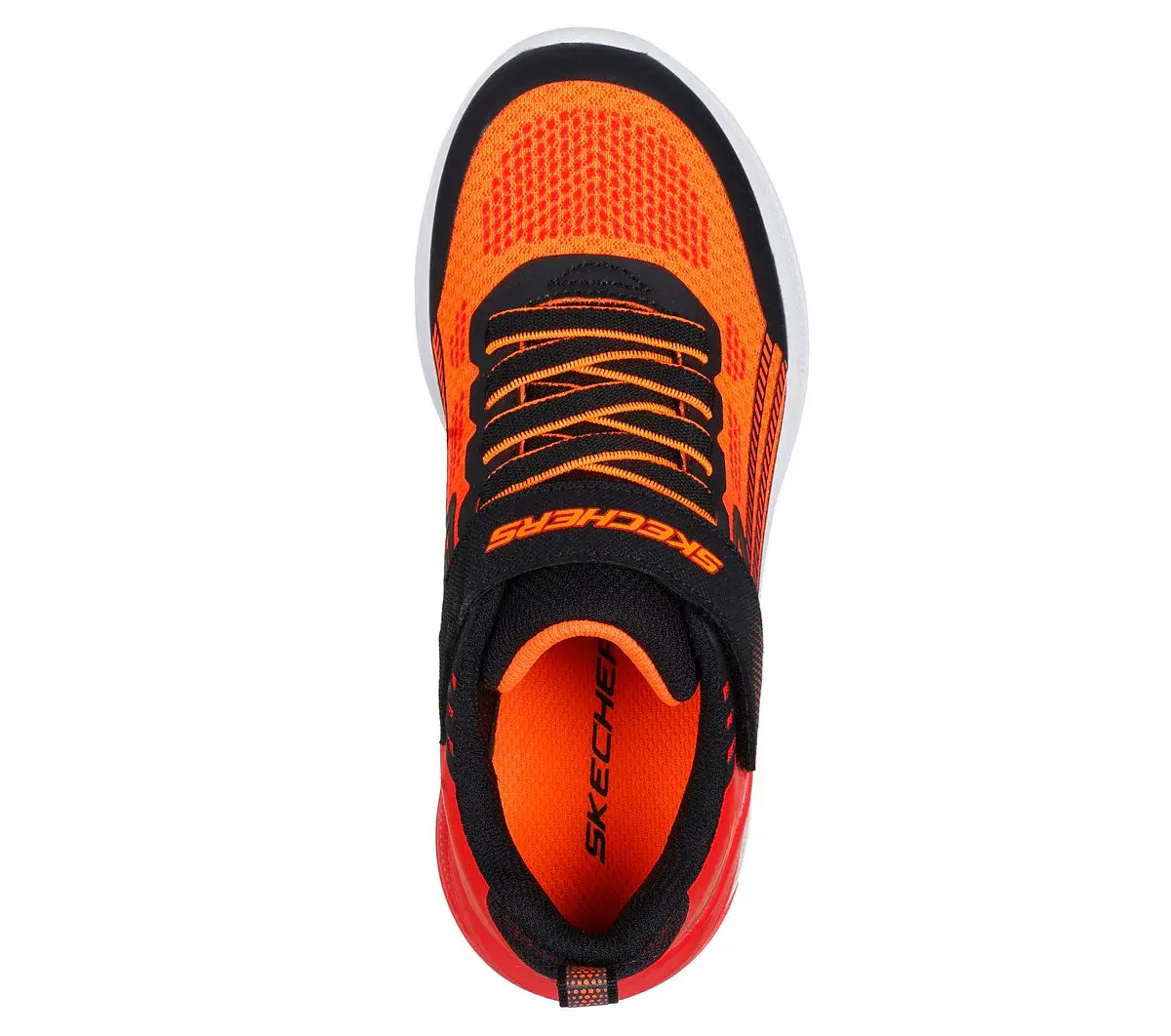 Play all day in easy-wearing comfort with Skechers Microspec Max Advance. This lightweight sporty design features a mesh and synthetic upper with stretch laces, adjustable instep strap, visible Skech-Air® midsole and tech piece, plus a cushioned comfort insole.