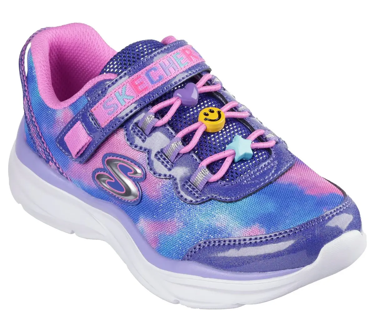 Share your friendship in Colorful Comfort® style wearing Skechers Power Jams – Skech Friends. This sporty, machine-washable style features a sparkle mesh and synthetic upper with heel pull accent, adjustable instep strap, and a charmed stretch-lace front. Friendship bracelet gift with purchase included.