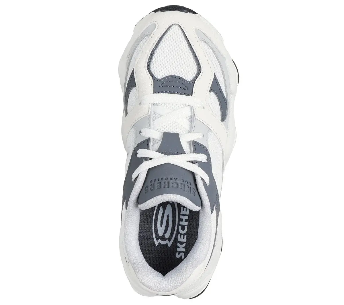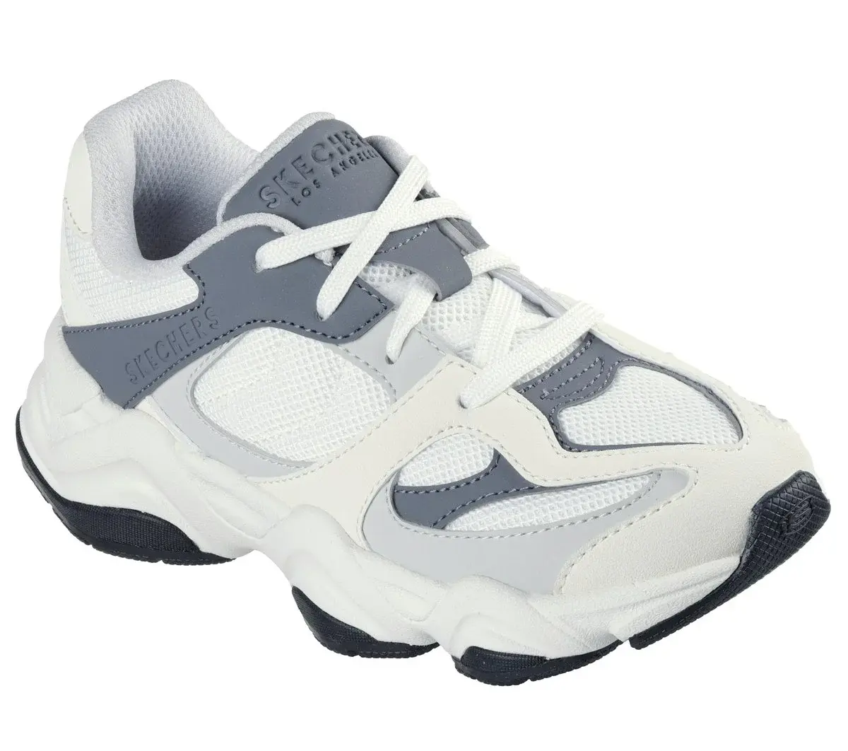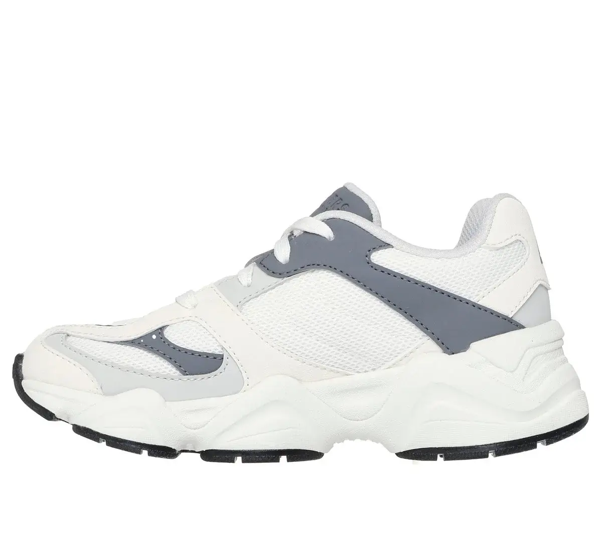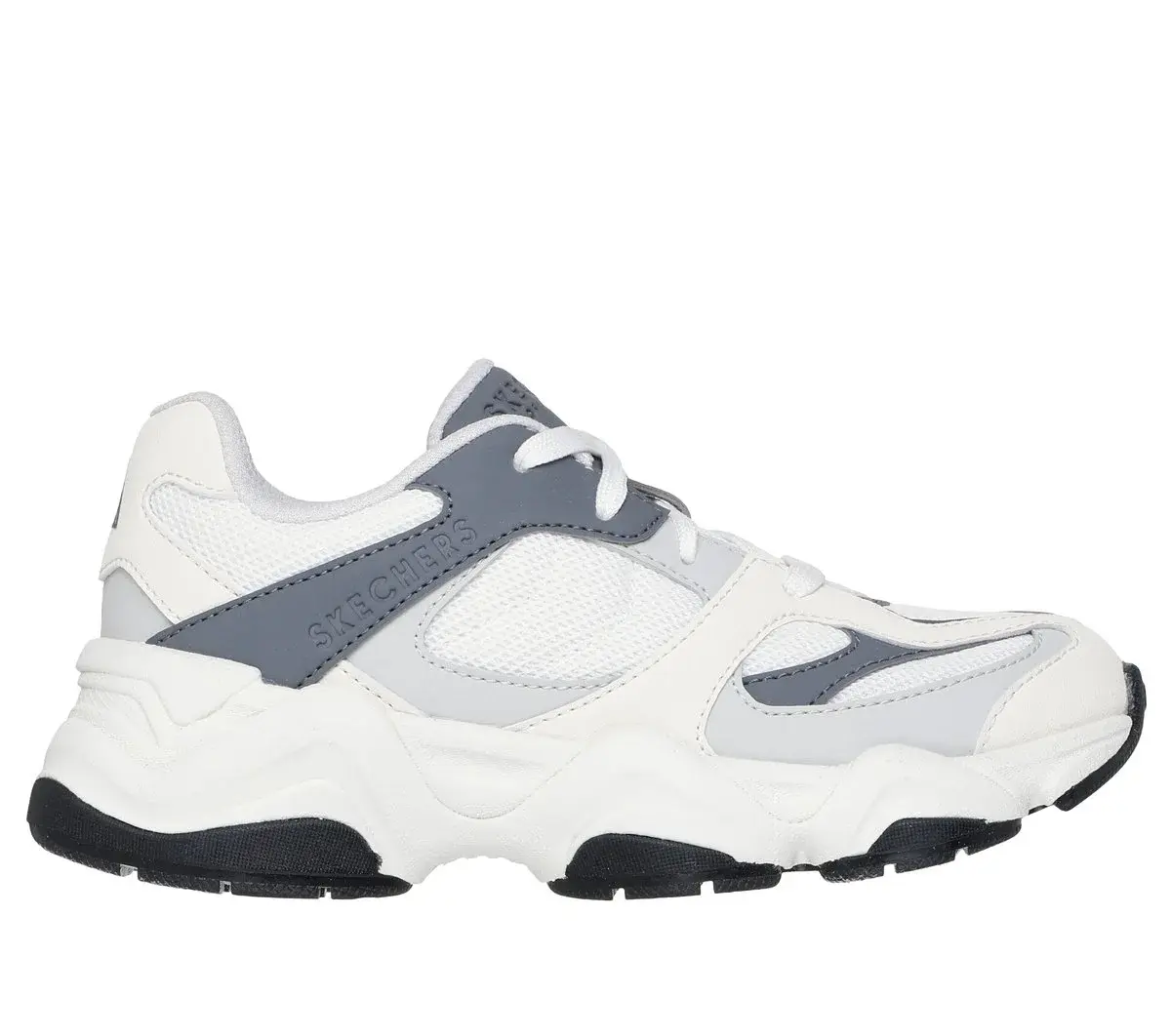 Play all day in durable sporty comfort wearing Skechers SKX-2901. This active lace-up design features a mesh and synthetic overlay upper with a chunky midsole and semi-articulated durable rubber outsole.