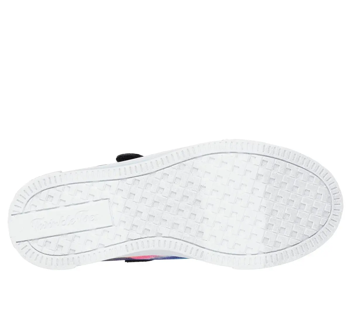 Light up the playground with heart-filled style wearing Skechers Twinkle Toes®: Twinkle Sparks – Ombre Love. This fun light-up sneaker features a metallic drip heart print fabric upper with glitter trim, satin stretch laces, adjustable instep strap, and a light-up rhinestone embellished toe.