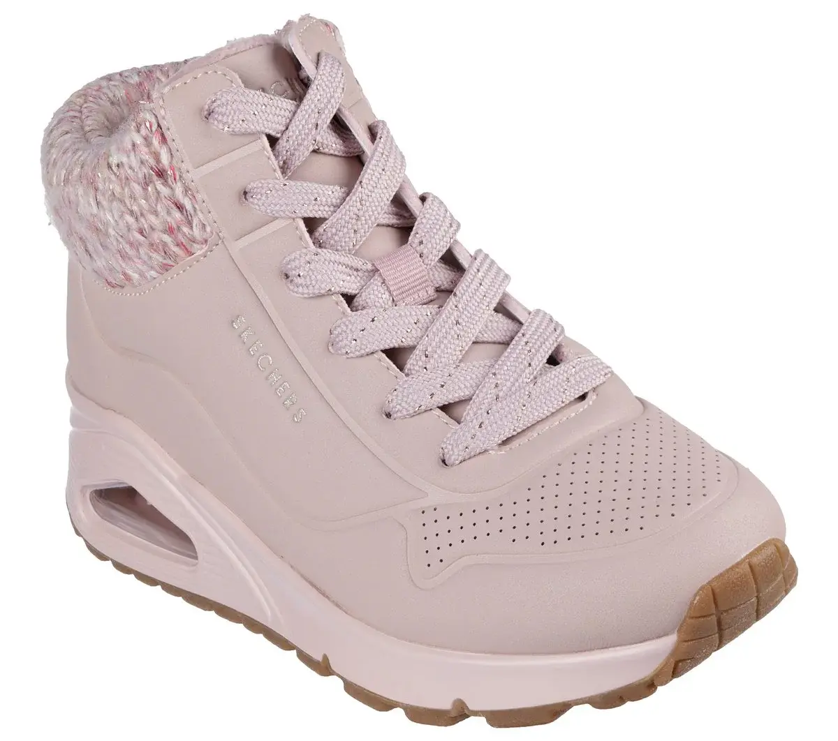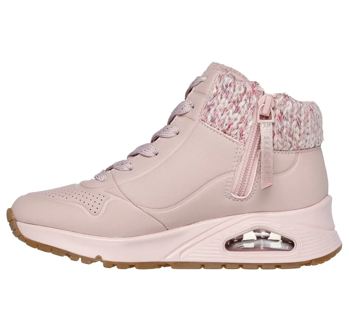 Sporty style meets cozy comfort in Skechers Street™ Uno Gen1 – Darling Daze. This hi-top fashion sneaker features a durabuck upper with sweater-knit collar trim, side-zipper with Adaptive Closure, and a Skechers Air-Cooled Memory Foam® insole – all on a Skech-Air® visible airbag platform wedge midsole.