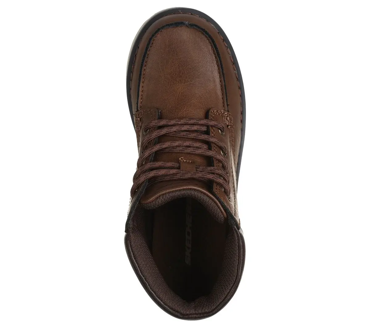 Show your mini how it’s done in true roofer boot style with Skechers Bowland – Truxer. This lace-up boot features a faux leather upper with a moc toe, padded collar, and cushioned comfort insole.