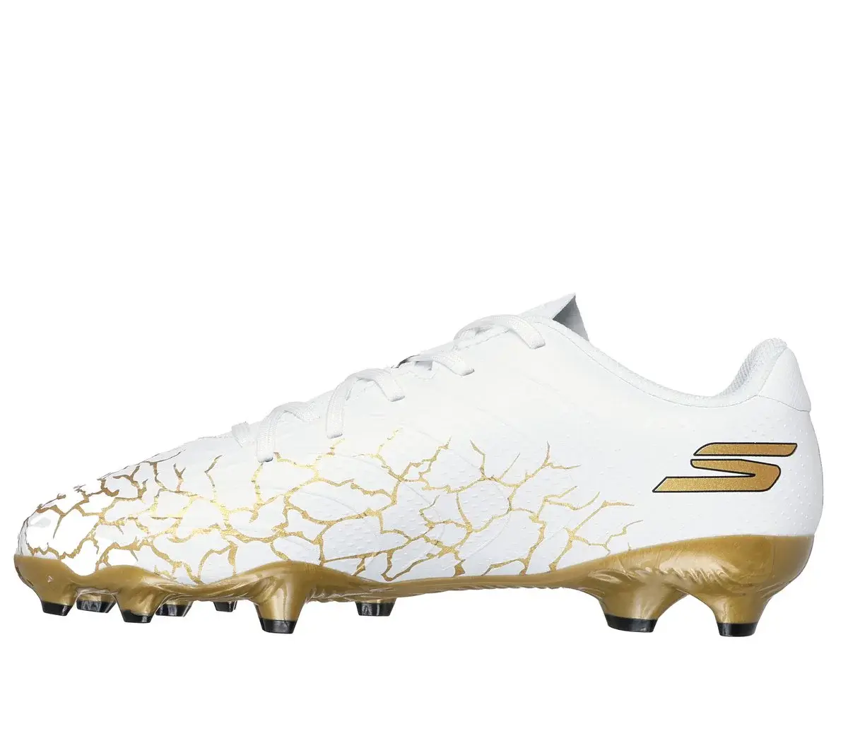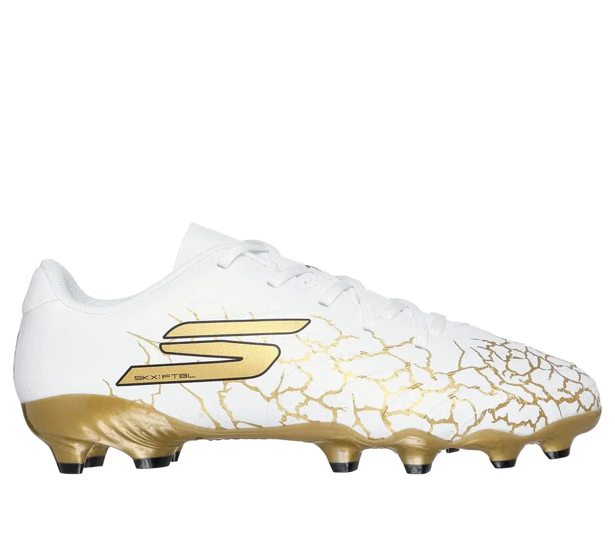 Strike with precision like never before with Skechers Soccer™: SKX_1.5 Jr Youth FG™. This lightweight firm ground boot features upper molding engineered for precise ball control, a responsive TPU plate, soft upper, and EVA sockliner for added comfort.