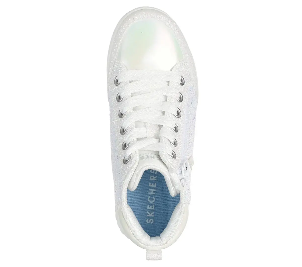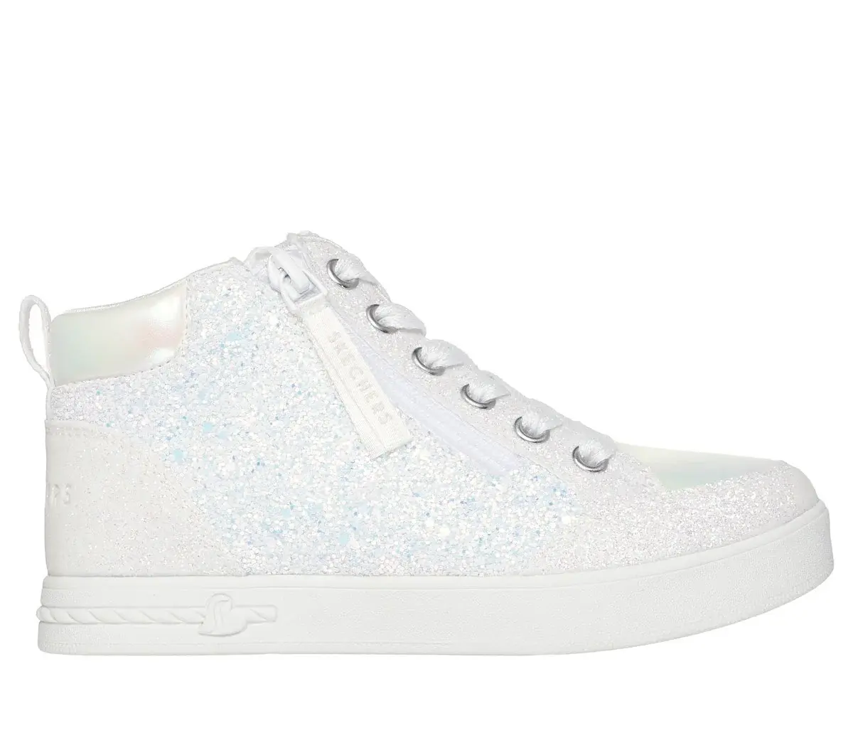 Show off your inner fashionista with Skechers Street™ Standouts 2.0 – Luxe Shimmer. This high-top lace-up features a synthetic glitter-covered upper with metallic heel trim and zipper closure.