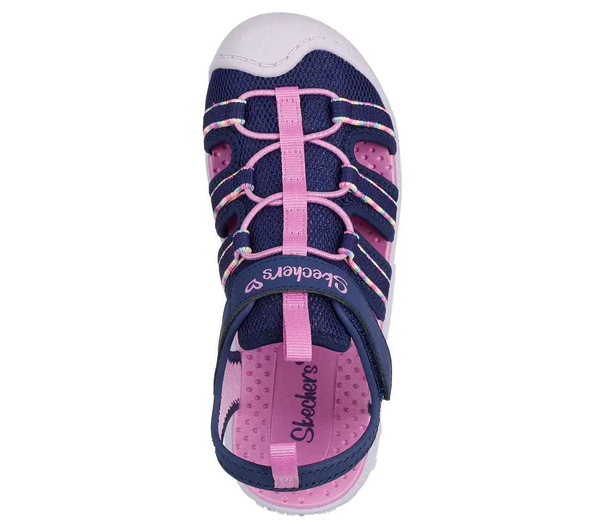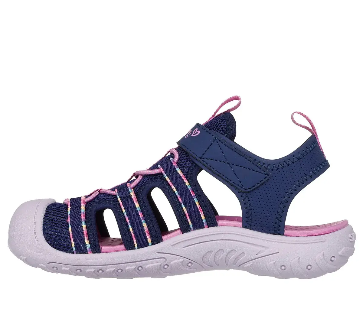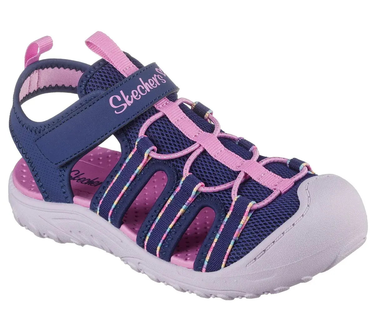 Let adventure be your guide wearing Skechers Reggae Troop. This closed-toe river sandal features a mesh upper with an adjustable instep strap, stretch lace detail, and a reinforced synthetic toe cap for durability.