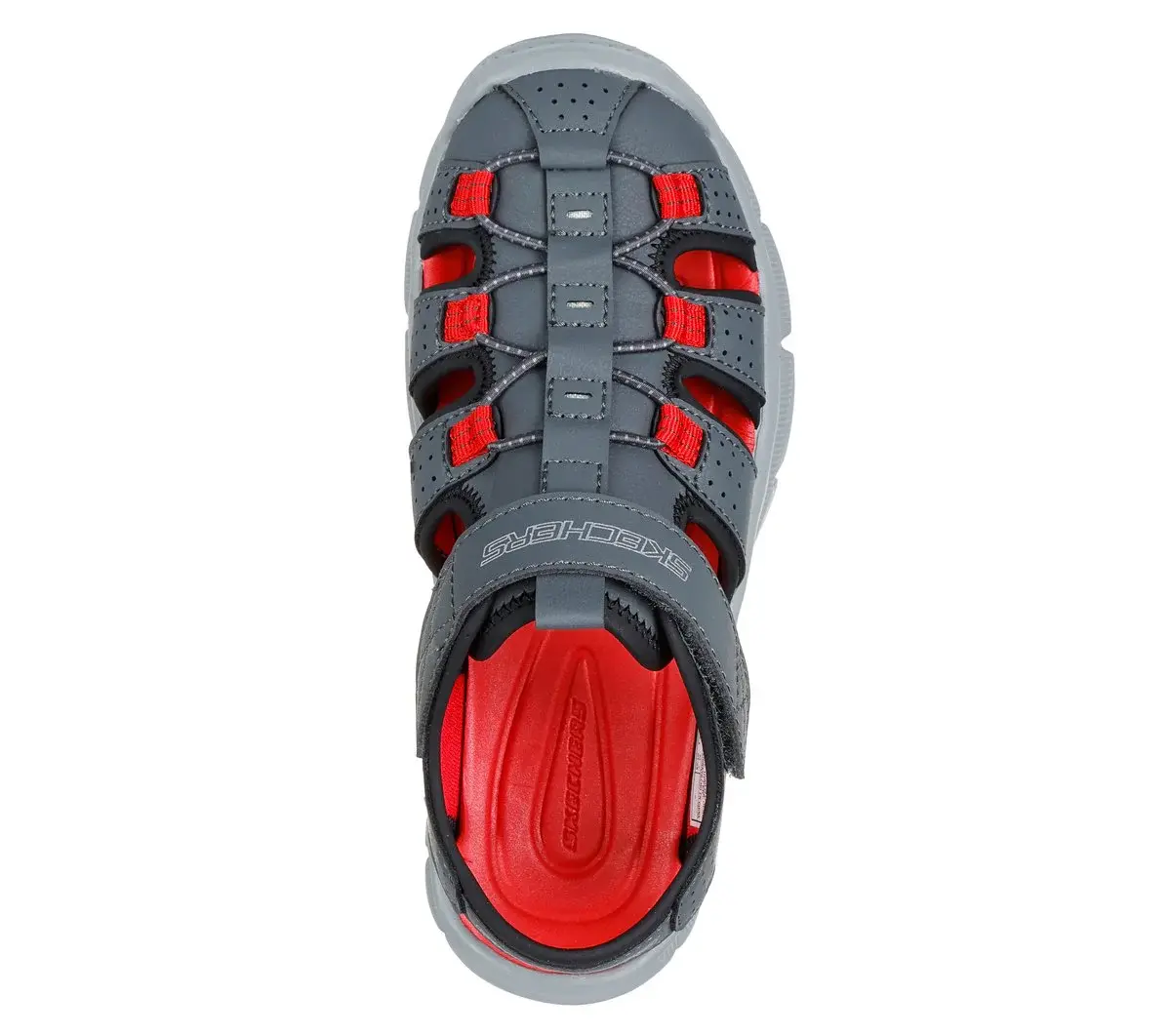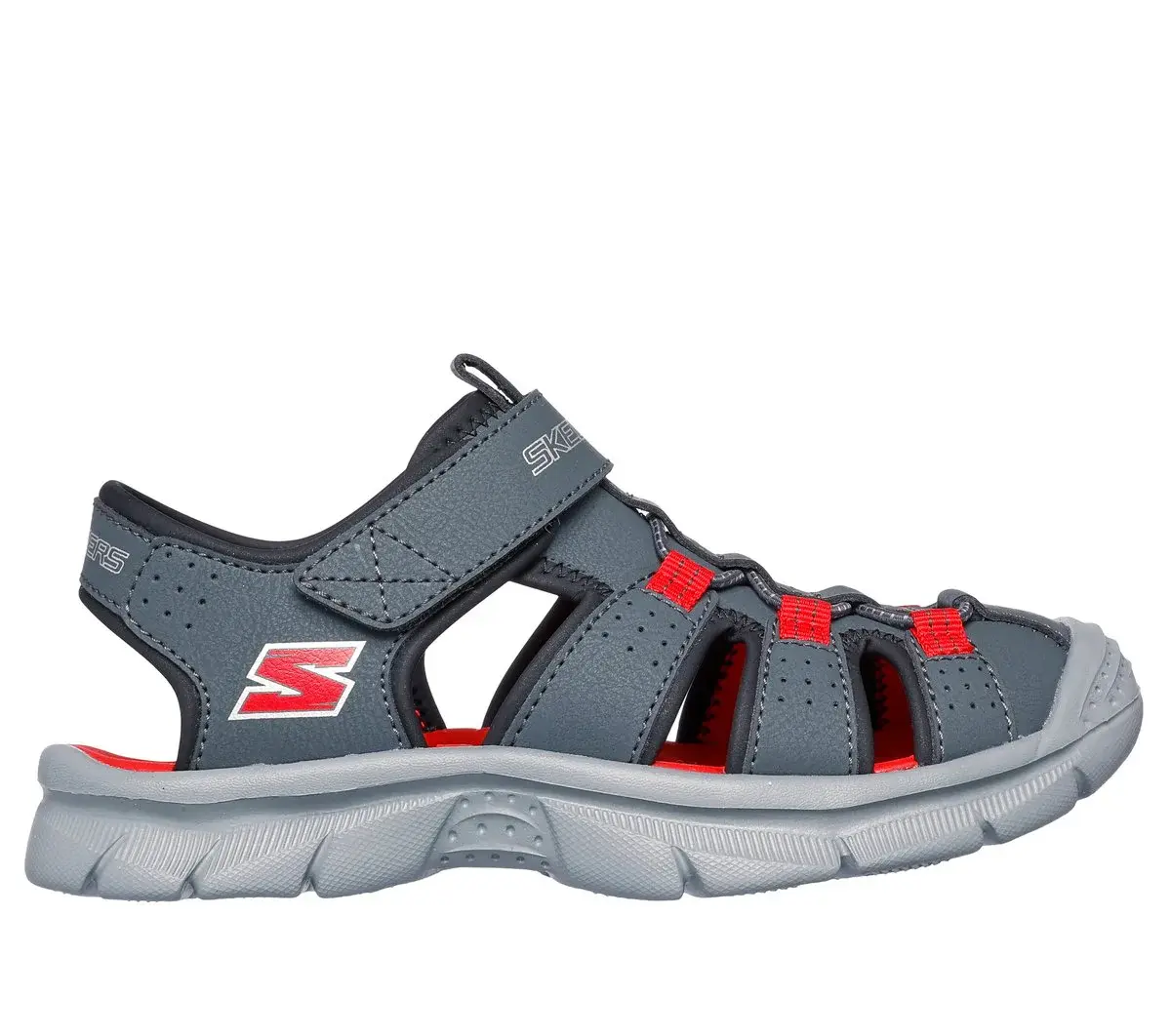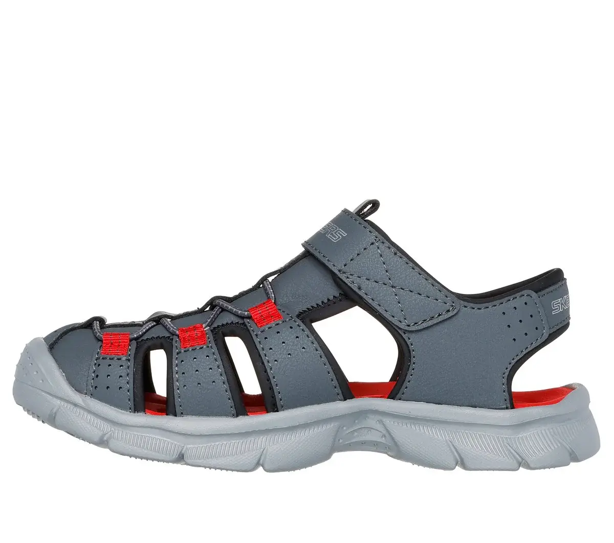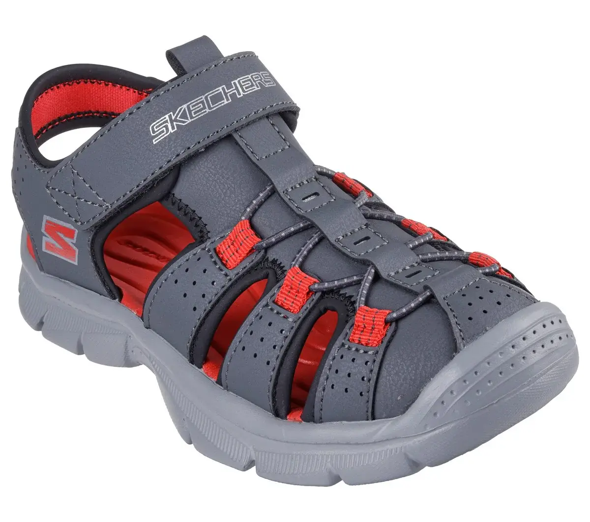 Have all day under the sun with added comfort in Skechers Relix. This fisherman sandal features a synthetic upper with Skechers adaptive closure and a contoured cushioned footbed.