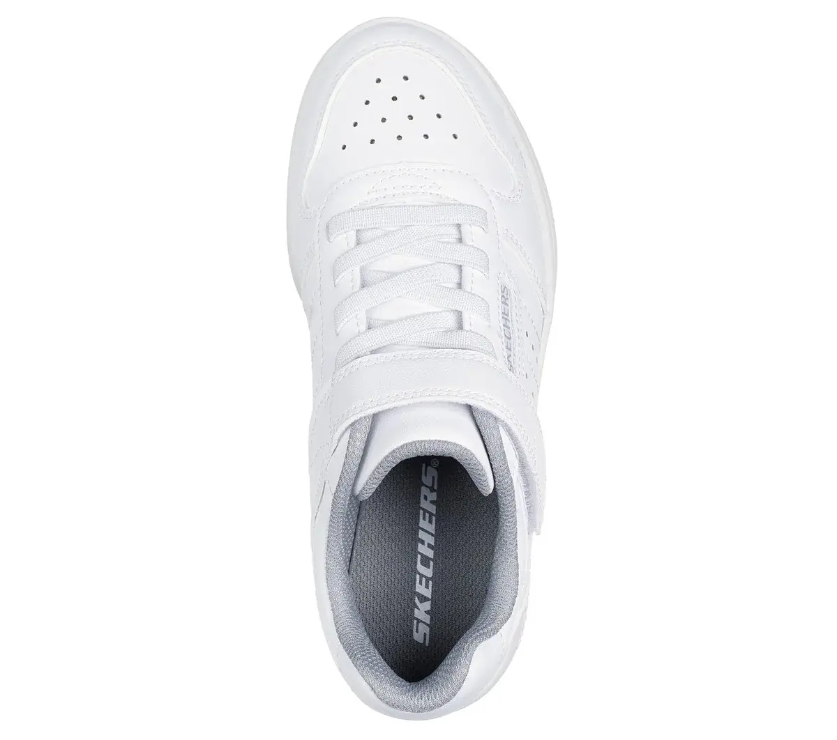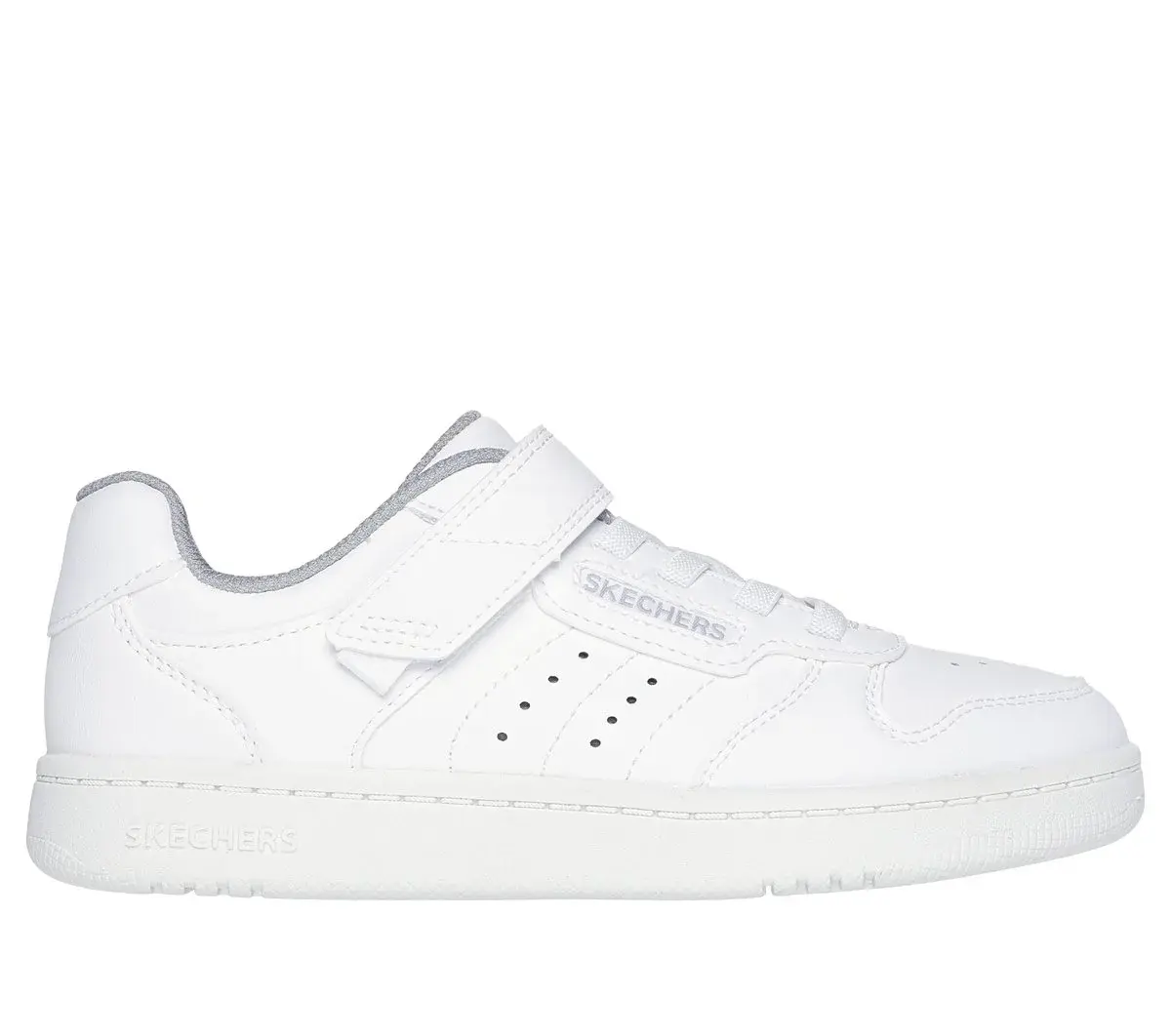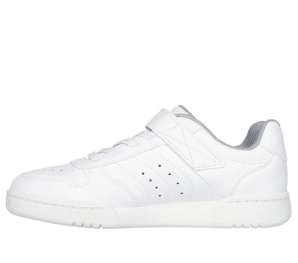 Alley-oop in comfortable court-style wearing Skechers Street™ Quick Street. This machine-washable low-top features a smooth duraleather upper with stretch laces, Skechers adaptive closure, and a cushioned comfort insole.