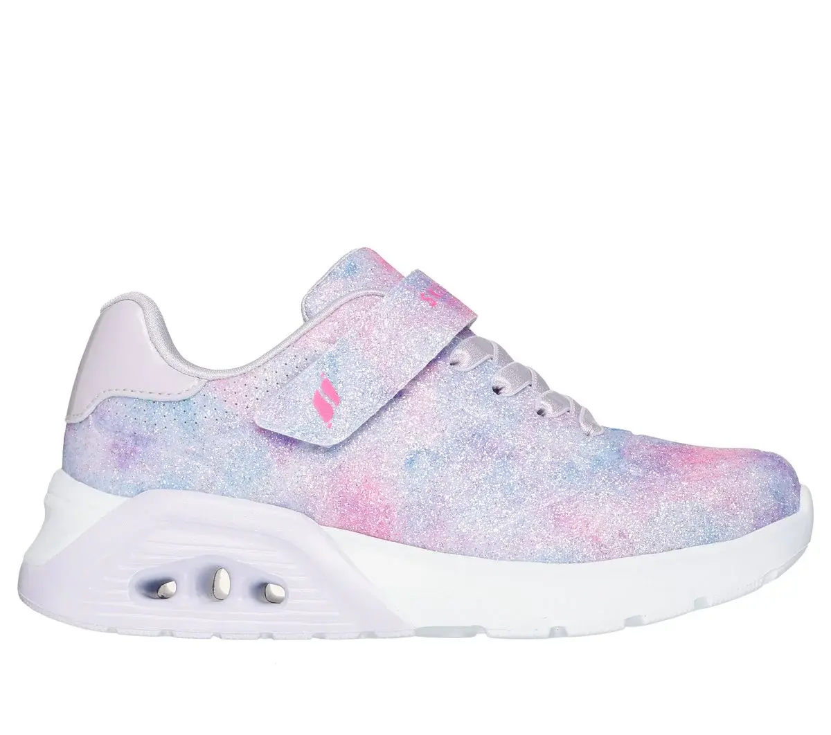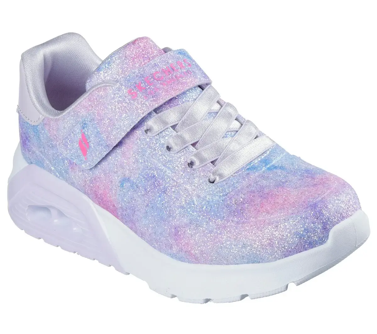 Step up your style with Skechers Street™ Uno Lite 2.0 – Glitter Spell. This lightweight Skechers adaptive closure design features an ombre glitter upper with fixed stretch laces, a hook-and-loop instep strap, a painted midsole with cutouts, and a Skechers Air-Cooled Memory Foam® comfort insole.