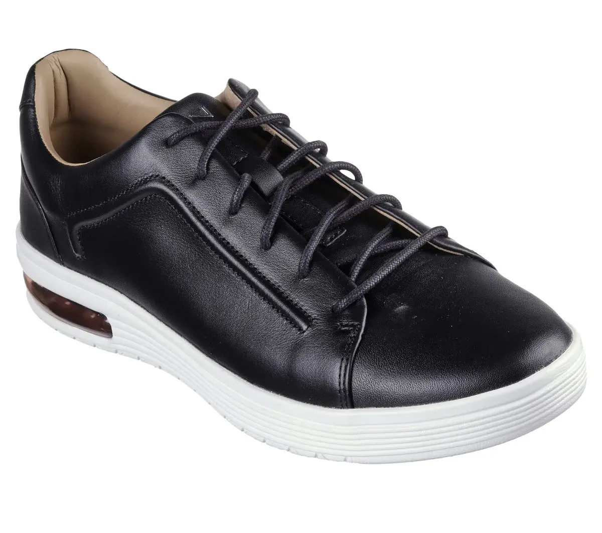 Take your comfort from the office to dinner in the trend-right Mark Nason® Skechers: Sup-Air – Tavern. This versatile dress sneaker features a smooth leather and synthetic upper with a round cord stretch lace front, translucent Skech-Air® midsole, and a cushioned Memory Foam Lux insole.