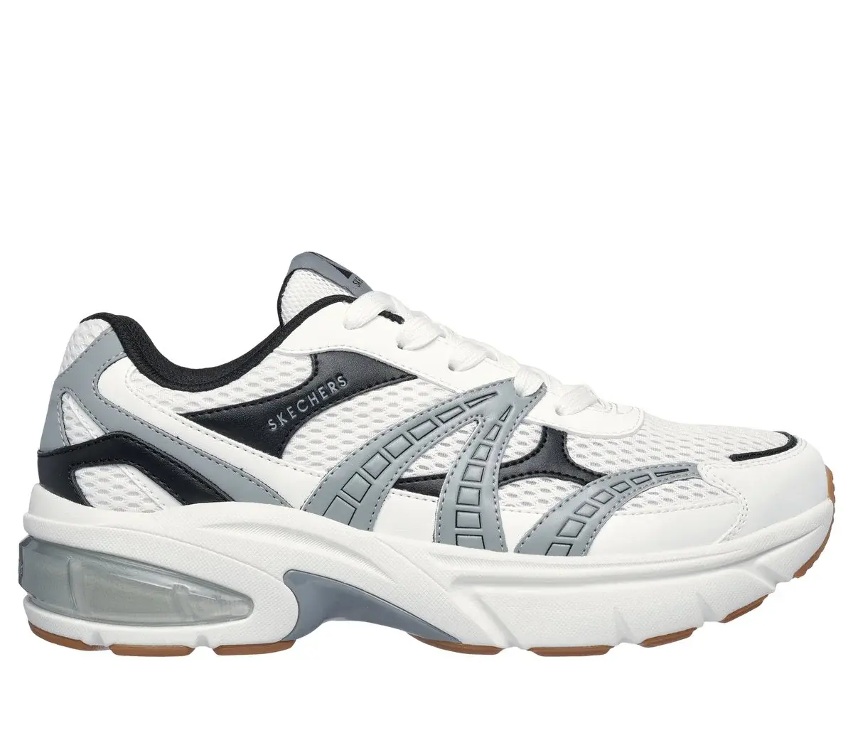 Stand out with a fresh kick from Skechers Street™ Shadow – Stellar OG. This sporty fashion lace-up features a duraleather and mesh upper with a cushioned Skechers Air-Cooled Memory Foam® insole.