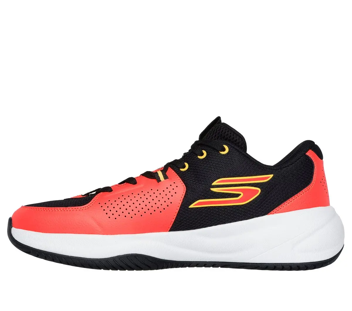 Move up and down the court like a champion wearing Skechers Basketball®: SKX League™. Designed for optimal comfort and exceptional stability, this low-top basketball lace-up features a breathable, lightweight mesh and durable leather upper. It’s equipped with a Skechers MOVE FOAM™ insole and innovative 5-GEN® Foam for responsive cushioning.