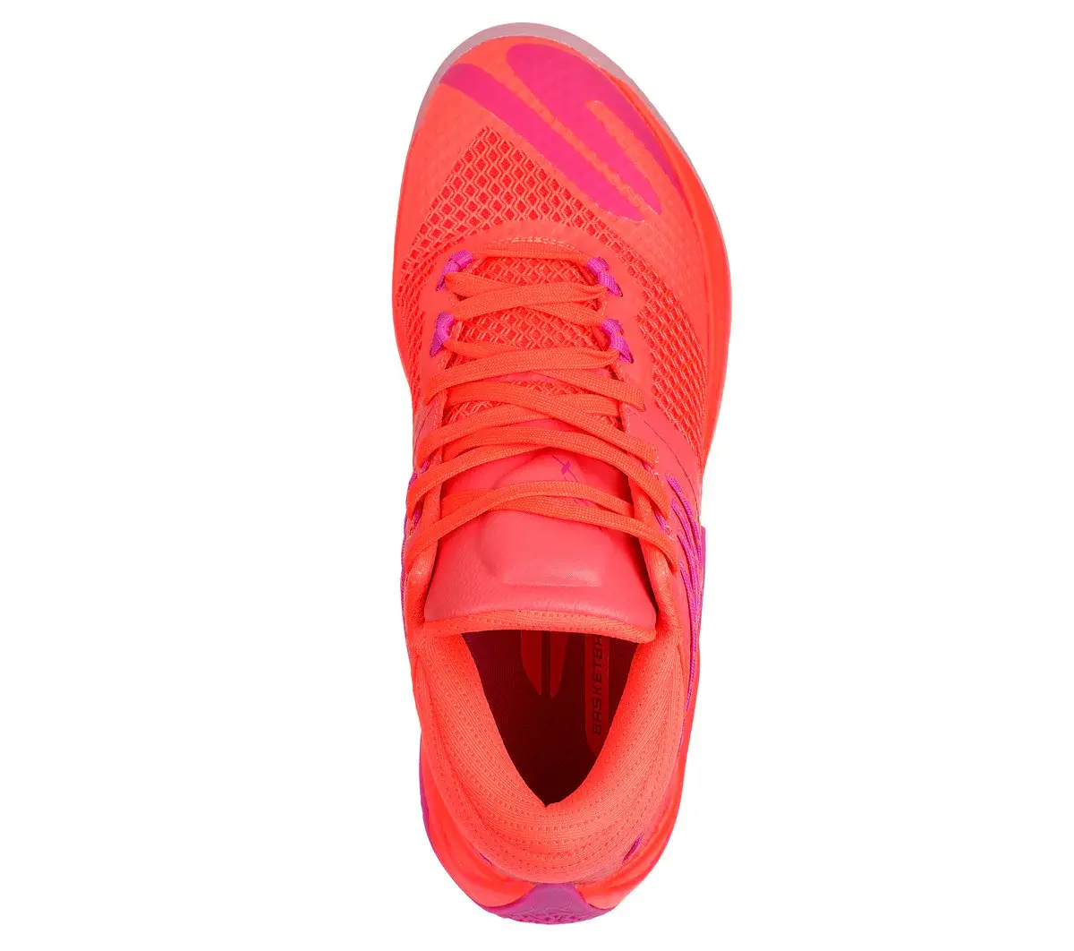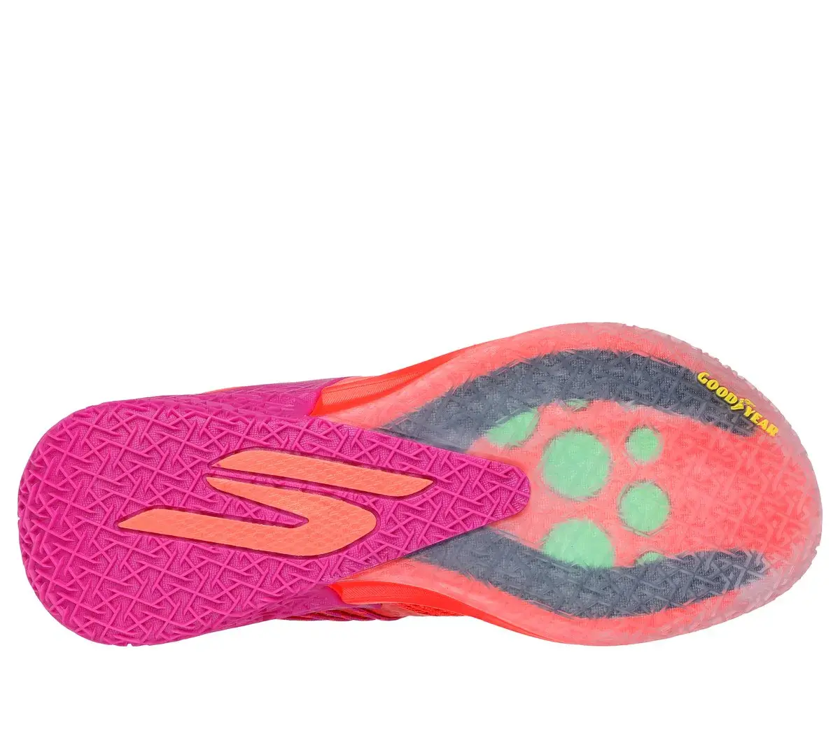 Take your game to the next level with Skechers Basketball®: SKX REIGN™, footwear engineered to promote a quick first step, speed, and intense traction. This mid-top lace-up features a comfort collar, lock-down heel, and a strategically-placed mid-foot wrap for players who prefer more stability. The design is enhanced with a resilient Skechers HYPER BURST PRO™ sock liner, a dual-density Skechers HYPER BURST® midsole, a carbon-infused plate for explosive take-offs, and a Goodyear® Performance Outsole for superior grip and long-lasting durability.