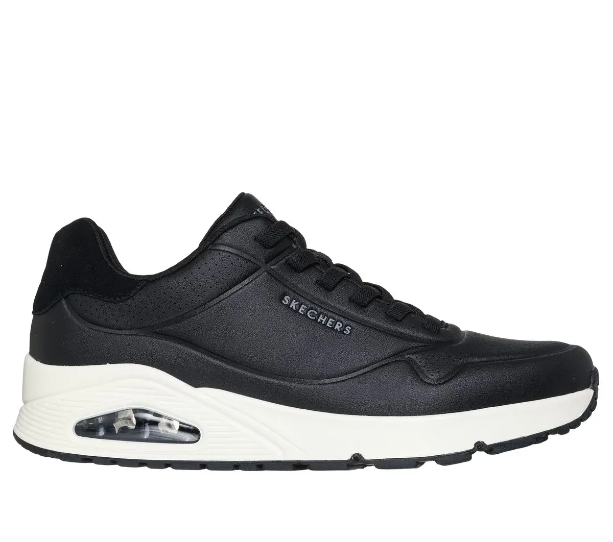 Smooth, sporty style and easy-wearing comfort combine in Skechers Street™ Uno – Tailored Air. This No Tie Fit™ sneaker features a duraleather upper with fixed stretch laces, a Skechers Air-Cooled Memory Foam® insole, and a Skech-Air® visible airbag midsole.
