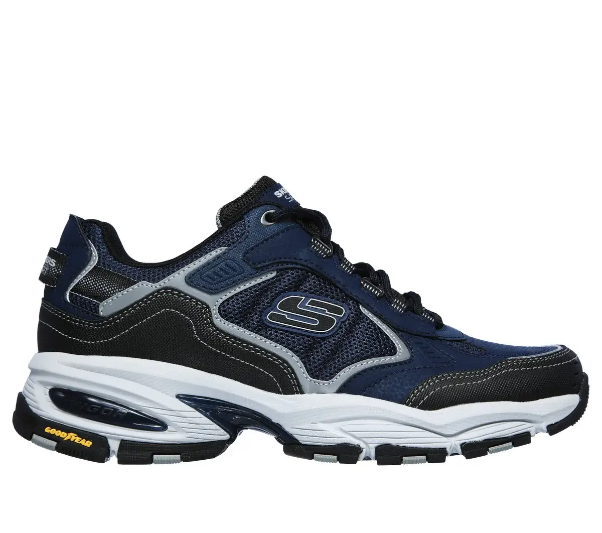A sporty classic look gets an upgrade in durable comfort with Skechers Vigor 3.0. This lace-up features a smooth leather and synthetic upper with a Skechers Air-Cooled Memory Foam® comfort insole, plus a durable Goodyear® Performance Outsole.
