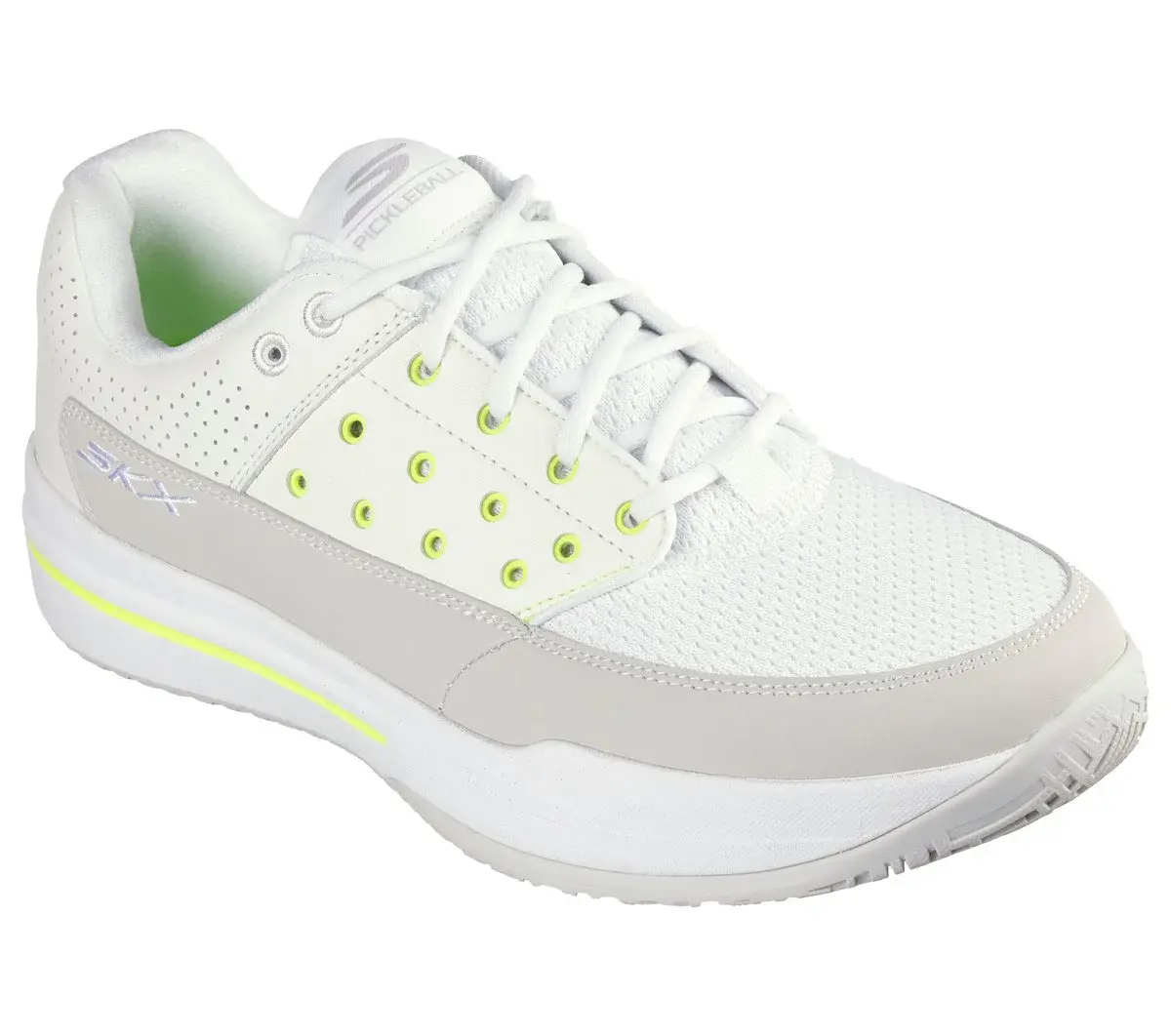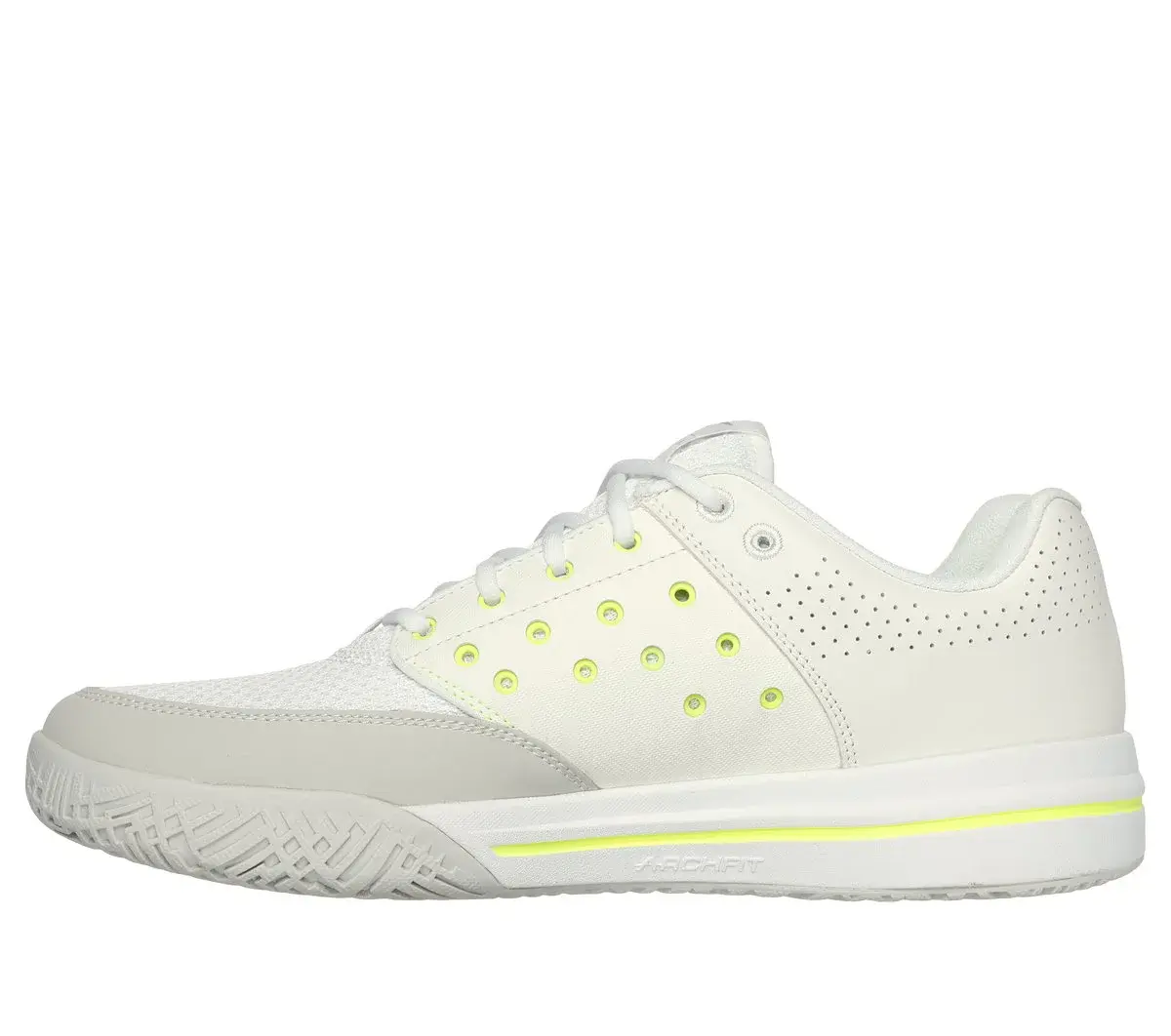 Elevate your game with unstoppable comfort wearing Skechers Viper Court Luxe. This performance court lace-up features a leather and synthetic upper with a removable Arch Fit® insole and lightweight ULTRA GO® Foam cushioning. This design is complete with a Goodyear® Rubber Performance Outsole built for increased durability and control on the court surface.