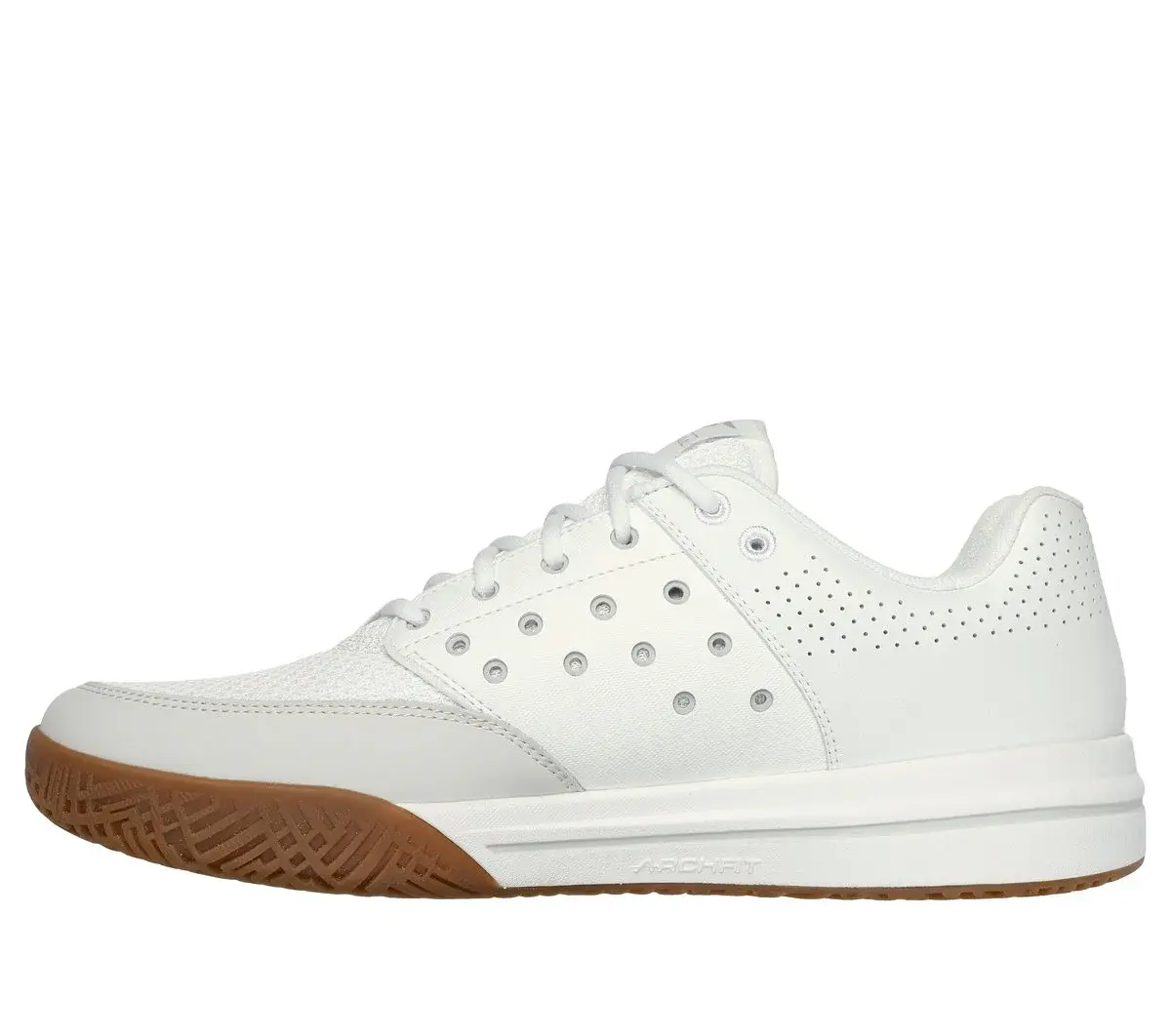 Elevate your game with unstoppable comfort wearing Skechers Viper Court Luxe. This performance court lace-up features a leather and synthetic upper with a removable Arch Fit® insole and lightweight ULTRA GO® Foam cushioning. This design is complete with a Goodyear® Rubber Performance Outsole built for increased durability and control on the court surface.