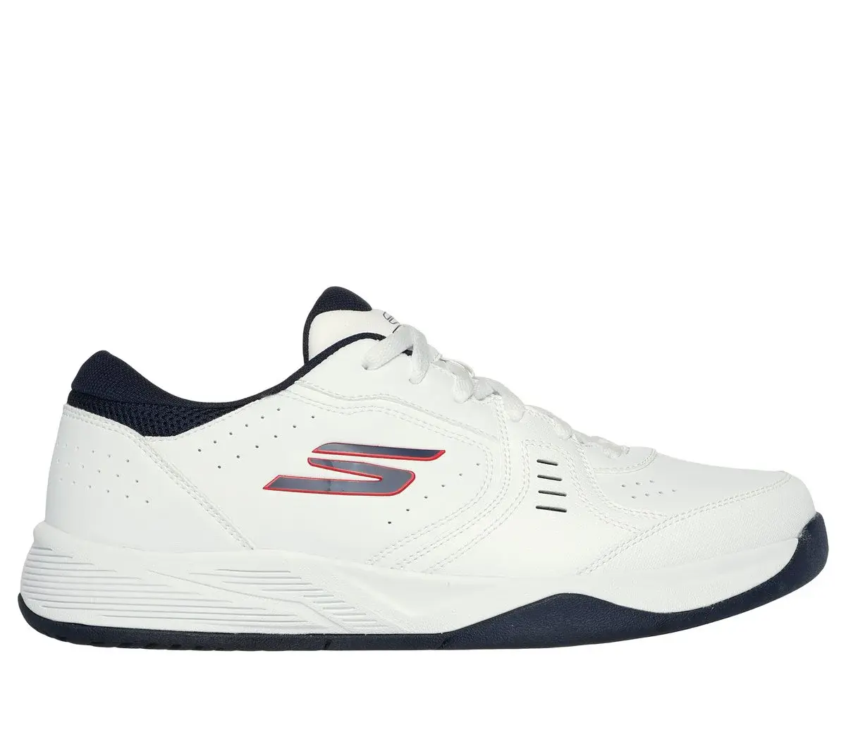 Smash your own record wearing Skechers Relaxed Fit®: Viper Court Smash. This vegan performance court lace-up features a smooth synthetic upper in a Relaxed Fit® with lightweight ULTRA FLIGHT® cushioning and a non-marking indoor/outdoor rubber outsole.