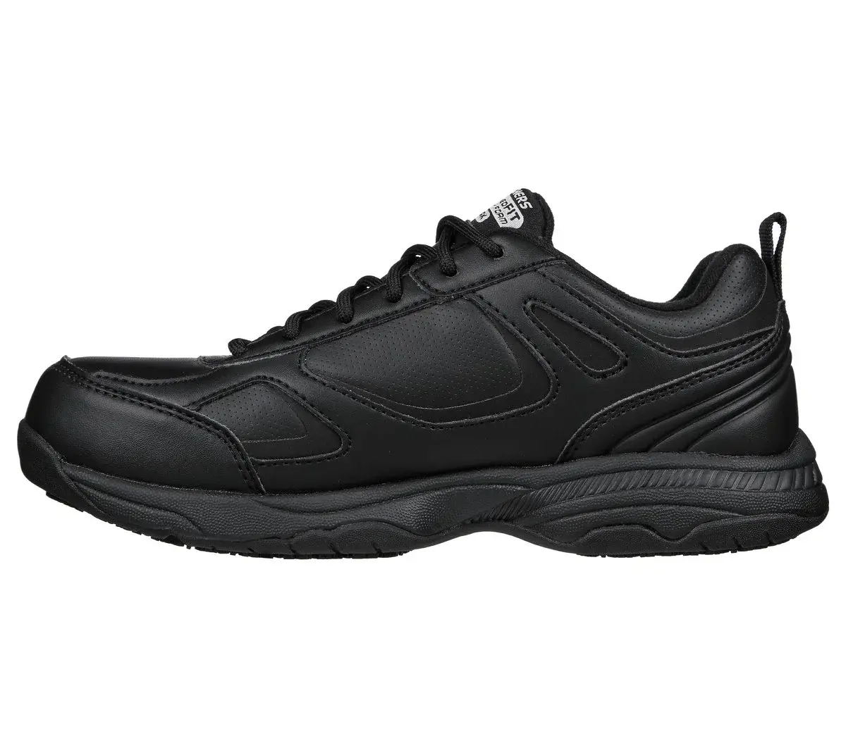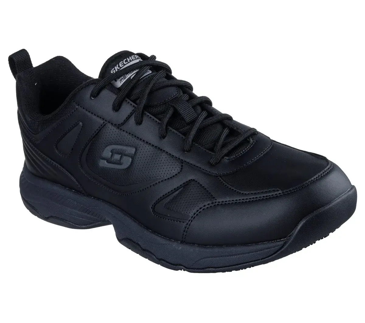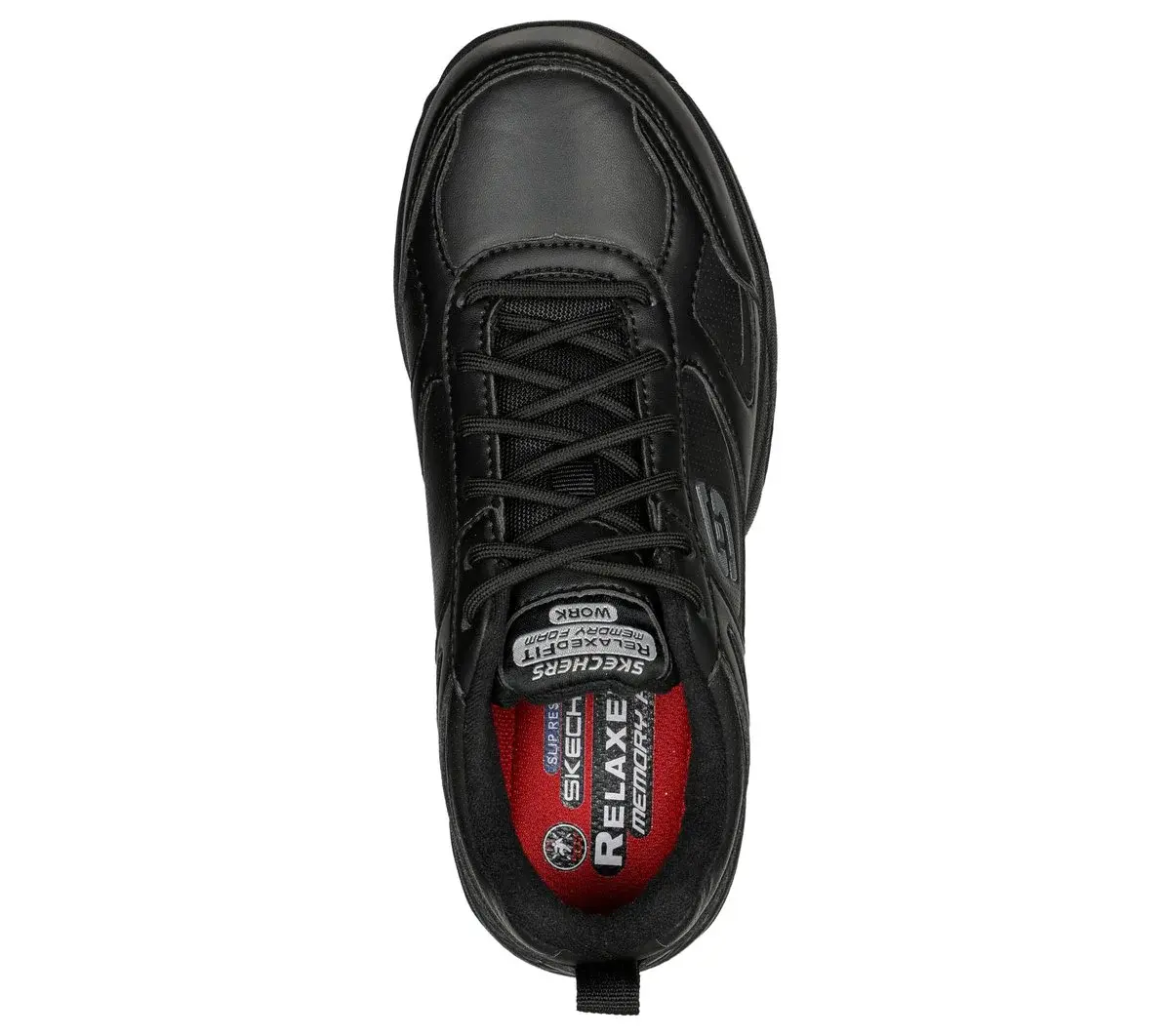 Keep yourself comfortable and safe in Skechers Work Relaxed Fit®: Dighton SR. This roomy slip-resistant style features a smooth leather and synthetic upper with a lace-up front, a cushioned Memory Foam insole, and a slip-resistant outsole.