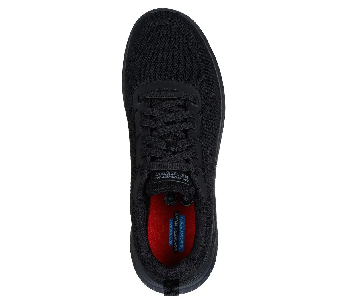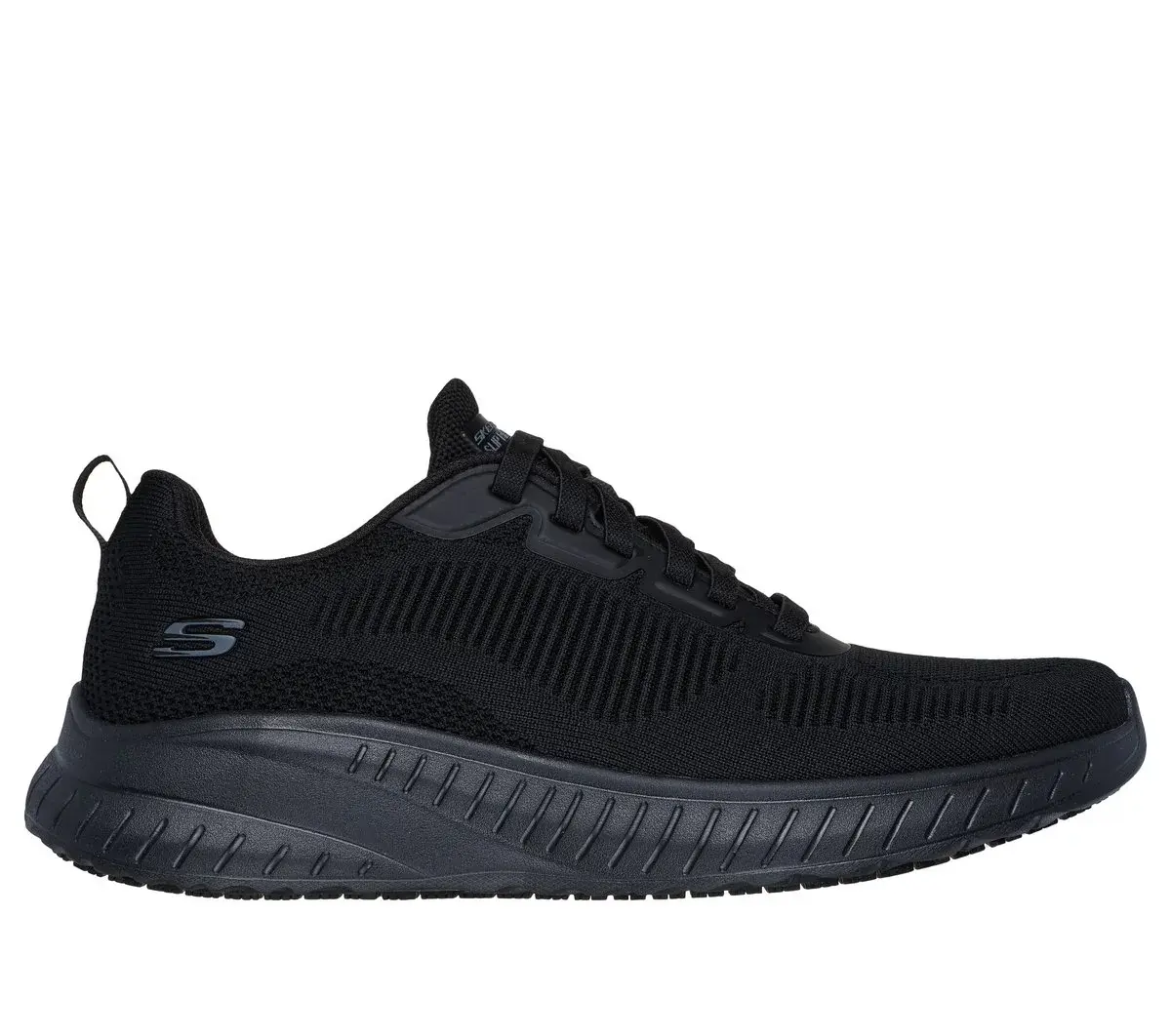 Athletic style and safety combine in Skechers Work™ Relaxed Fit®: Squad Chaos Slip Resistant – Fellker. This slip-resistant 3M® Scotchgard® treated work design features a synthetic knit upper with fixed stretch laces and a Skechers Air-Cooled Memory Foam® insole.