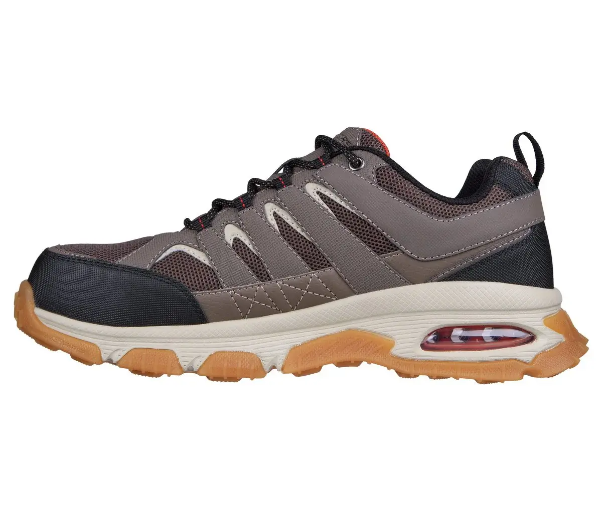 Gear up for your shift in exceptional traction and supportive comfort with Skechers Work: Skech-Air® Envoy ST – Arcket. This lace-up features a water-repellent leather, synthetic and mesh upper with a Skechers Air-Cooled Memory Foam® insole, Skech-Air® visible airbag midsole, and a highly durable Goodyear® Performance Outsole.