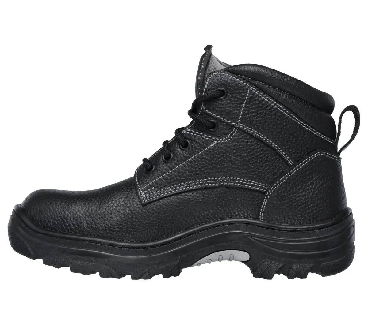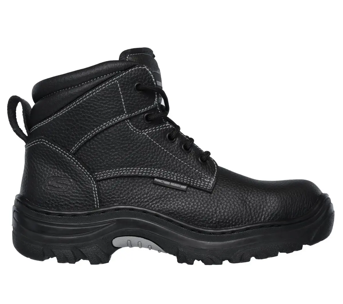 Surround yourself with comfort, style and protection wearing Skechers Work Relaxed Fit®: Burgin – Tarlac ST. Featuring a leather upper on a lace-up ankle height steel toe work boot with a cushioned Skechers Memory Foam™ insole.