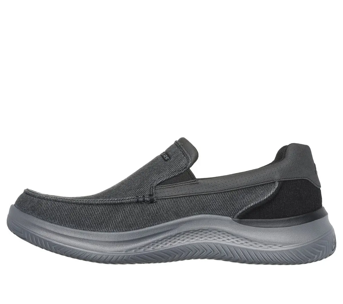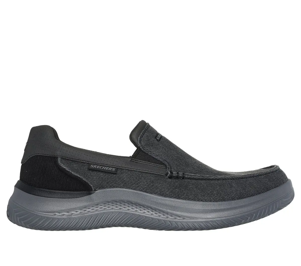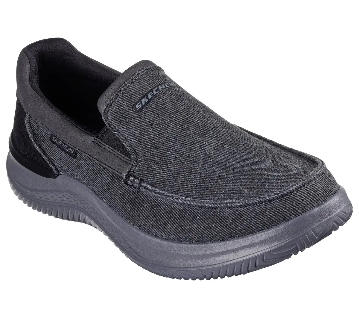 Experience casual comfort for your daily life wearing Skechers Relaxed Fit®: Hasting – Fielden. This vegan moc toe loafer features a roomy canvas and synthetic trimmed upper with twin gore panels for ease of wear and a cushioned Air-Cooled Memory Foam® insole.