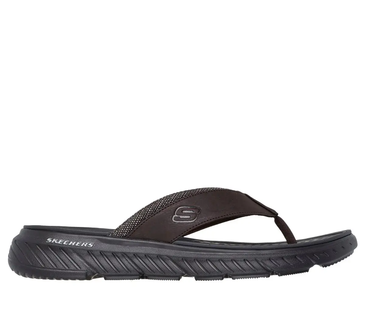 Sunny-weather comfort and classic style combine in Skechers Relaxed Fit®: Harver – Farley. This casual thong sandal features a faux leather and tweed fabric upper with a Luxe Foam® footbed and a durably flexible outsole.