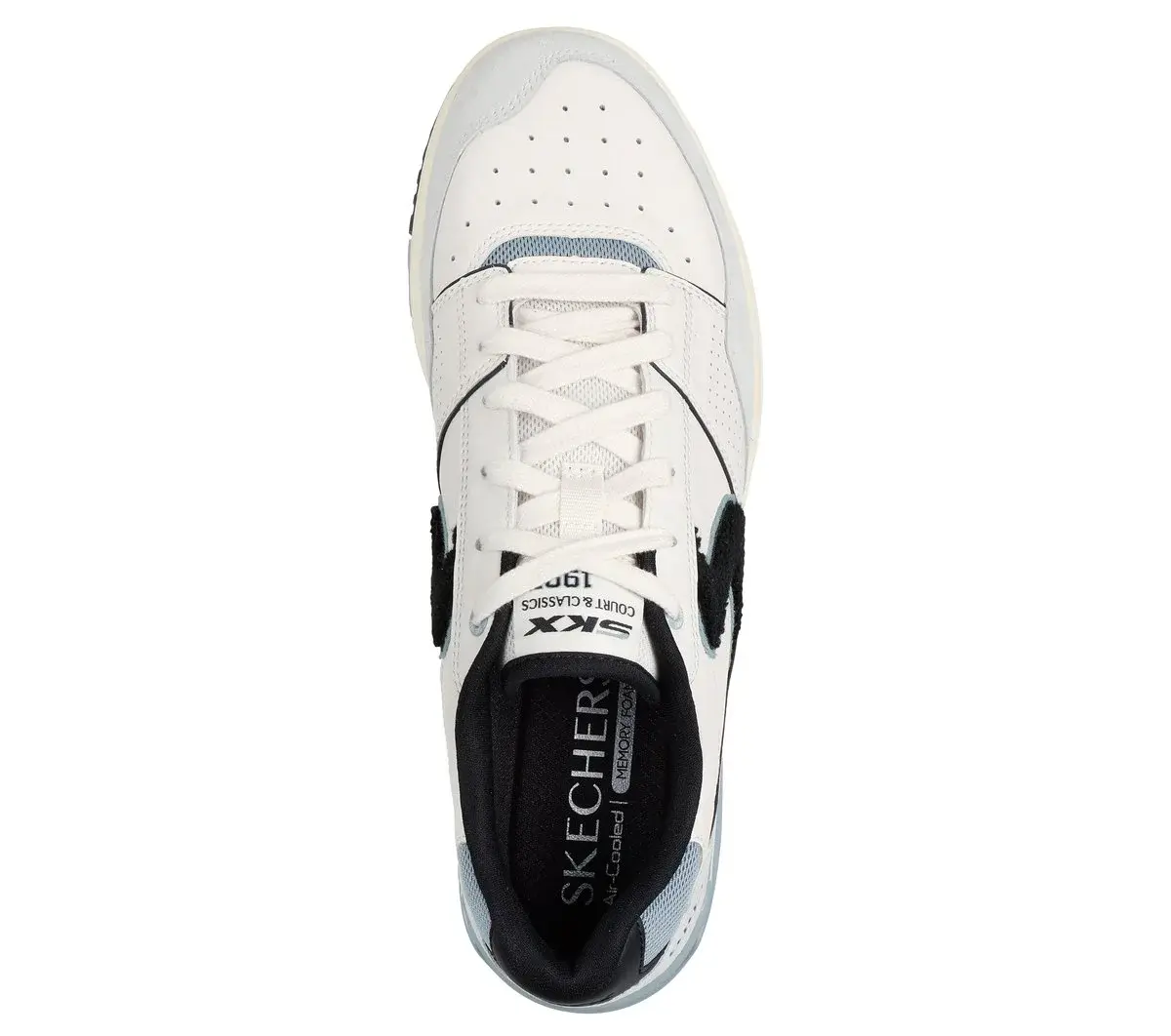 Walk through time in throwback style and classic comfort wearing Skechers S-1992. This retro-inspired lace-up features a leather, pig suede, and mesh upper with a chenille logo detail and a cushioned Skechers Air-Cooled Memory Foam® insole.