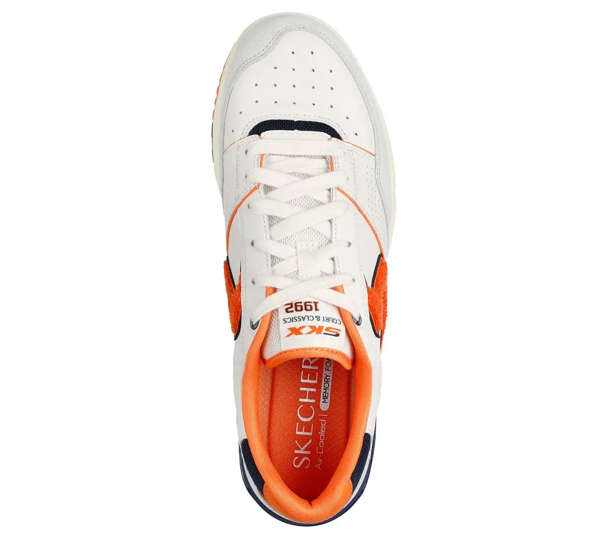 Walk through time in throwback style and classic comfort wearing Skechers S-1992. This retro-inspired lace-up features a leather, pig suede, and mesh upper with a chenille logo detail and a cushioned Skechers Air-Cooled Memory Foam® insole.