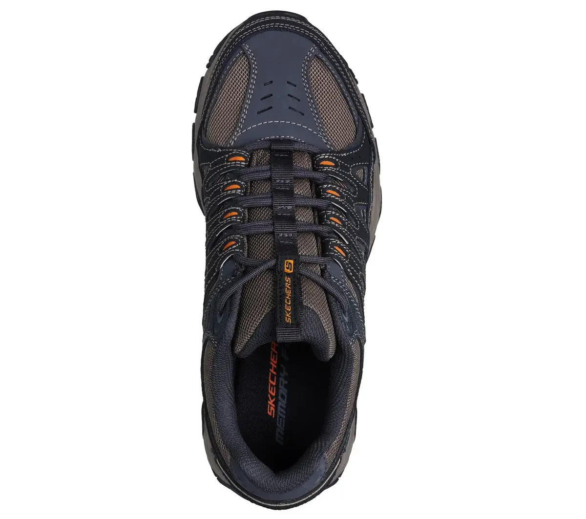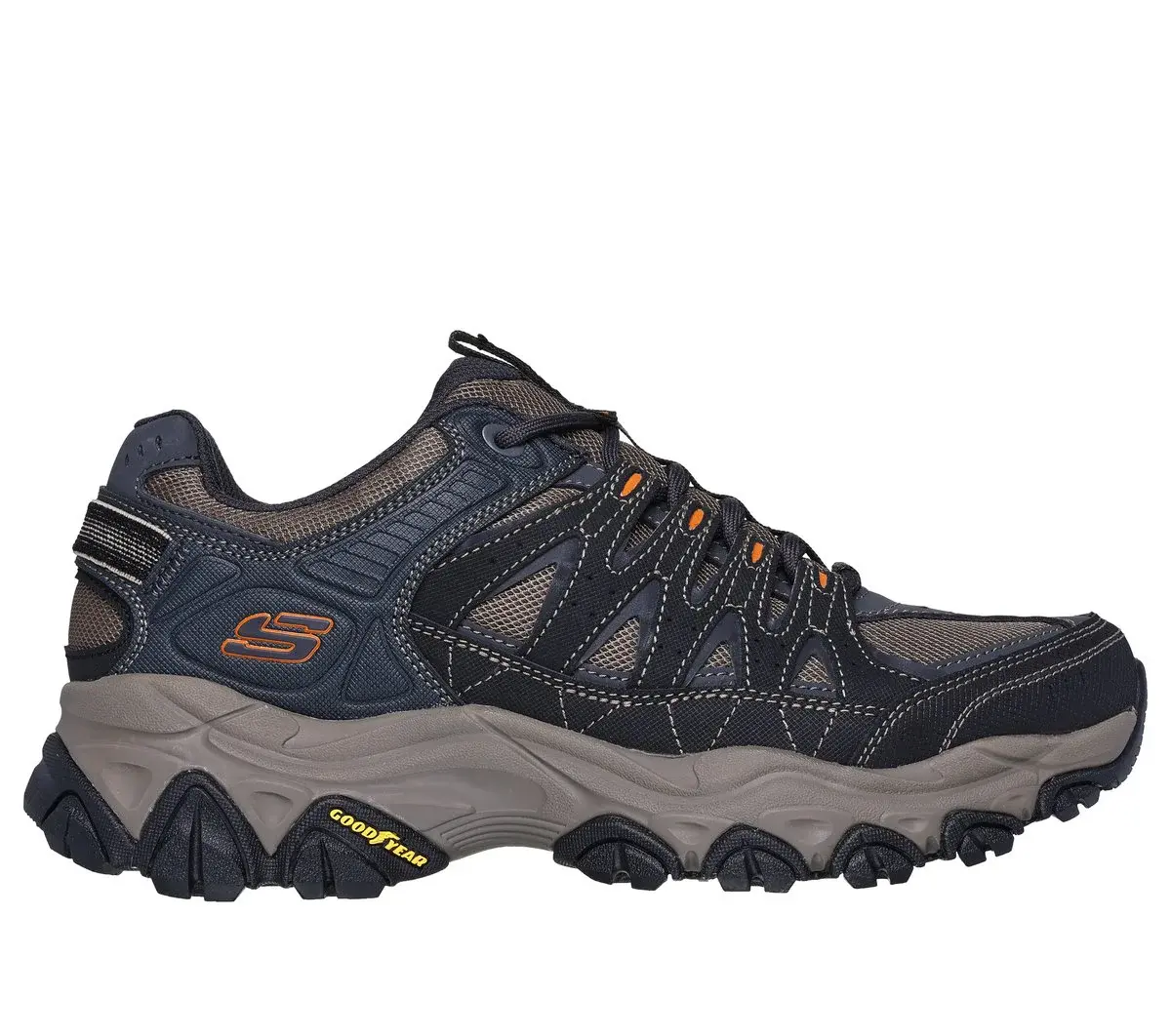 Explore wild terrain in comfort with Skechers After Burn M.Fit 2.0. This lace-up outdoor trail design features a leather, synthetic and mesh upper with a cushioned Skechers Memory Foam™ insole and Goodyear® Rubber Outsole.