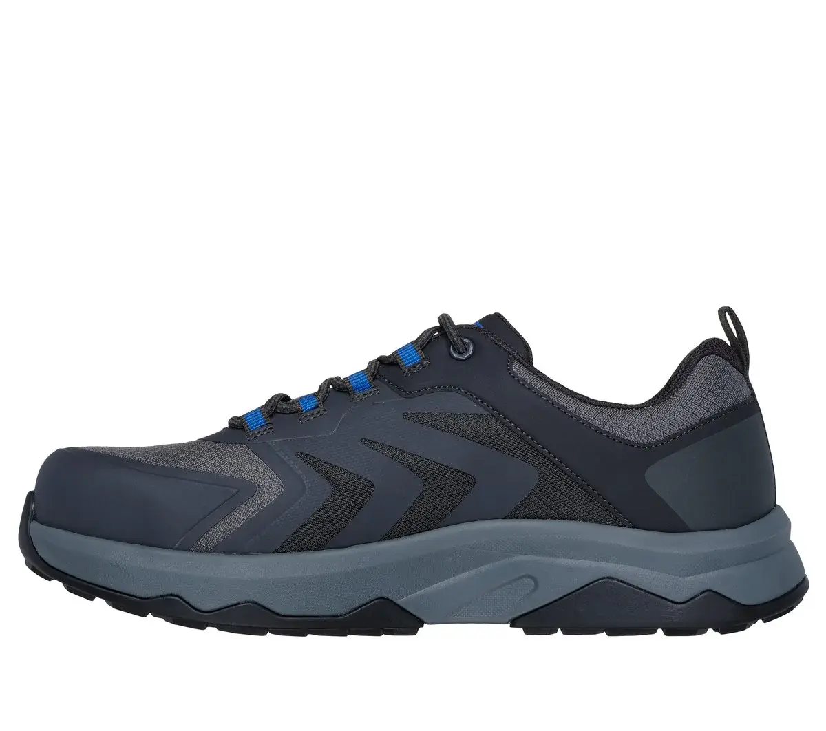 Gear up with comfort and protection wearing Skechers Work™: Speed-Flex Trekker. This slip-resistant laced pull-on features a ballistic nylon and synthetic upper with a non-metallic carbon nano safety toe, Skechers Air-Cooled Memory Foam® insole, and Goodyear® Rubber Outsole.