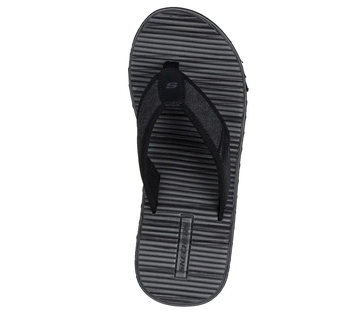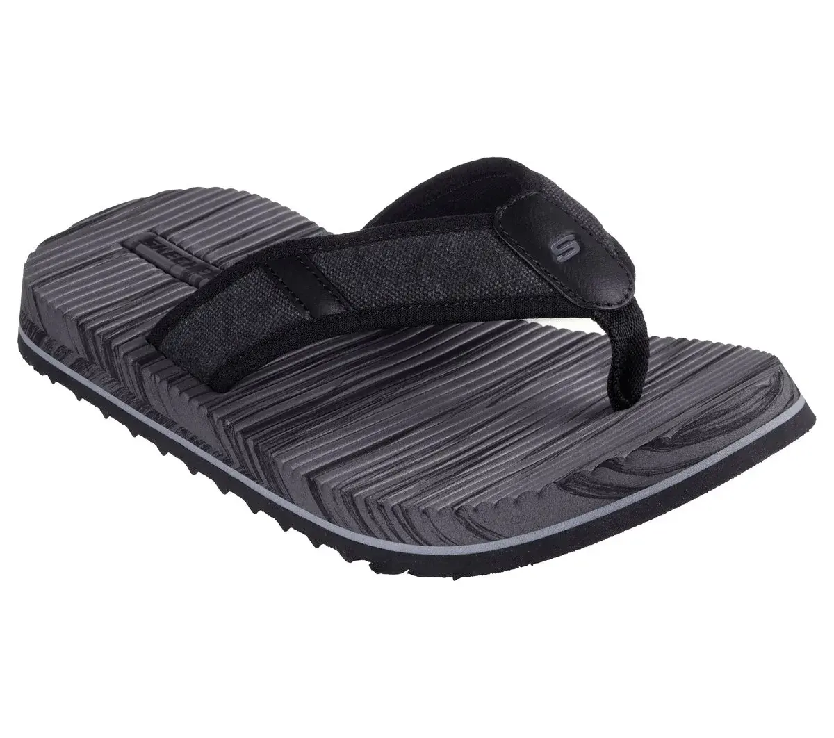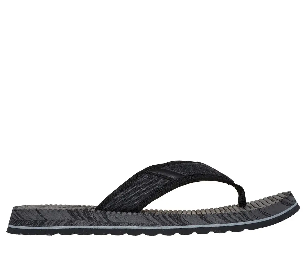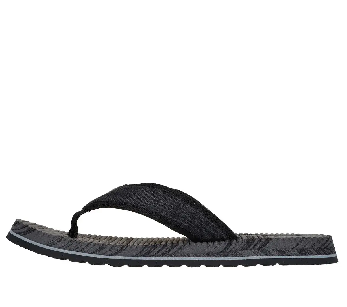 Achieve relaxation nirvana with Skechers Relaxed Fit®: Tantric – Rafe. This roomy 3-point thong sandal features a woven fabric upper with a cushioned comfort footbed.