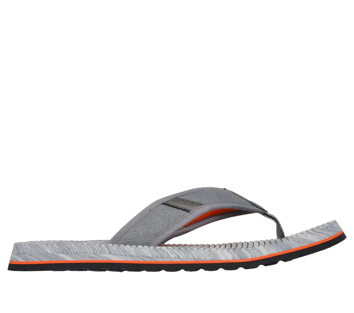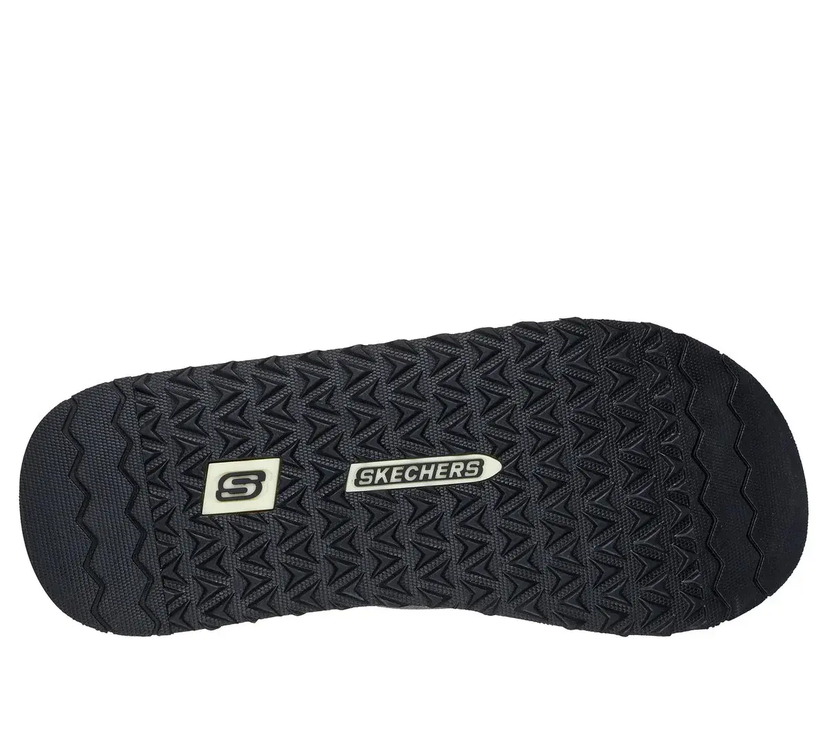 Achieve relaxation nirvana with Skechers Relaxed Fit®: Tantric – Rafe. This roomy 3-point thong sandal features a woven fabric upper with a cushioned comfort footbed.