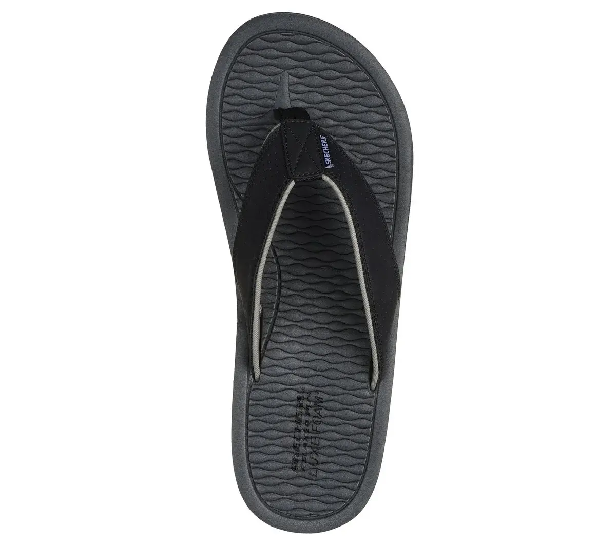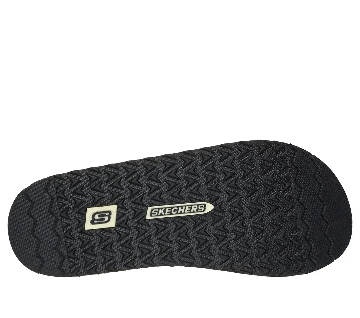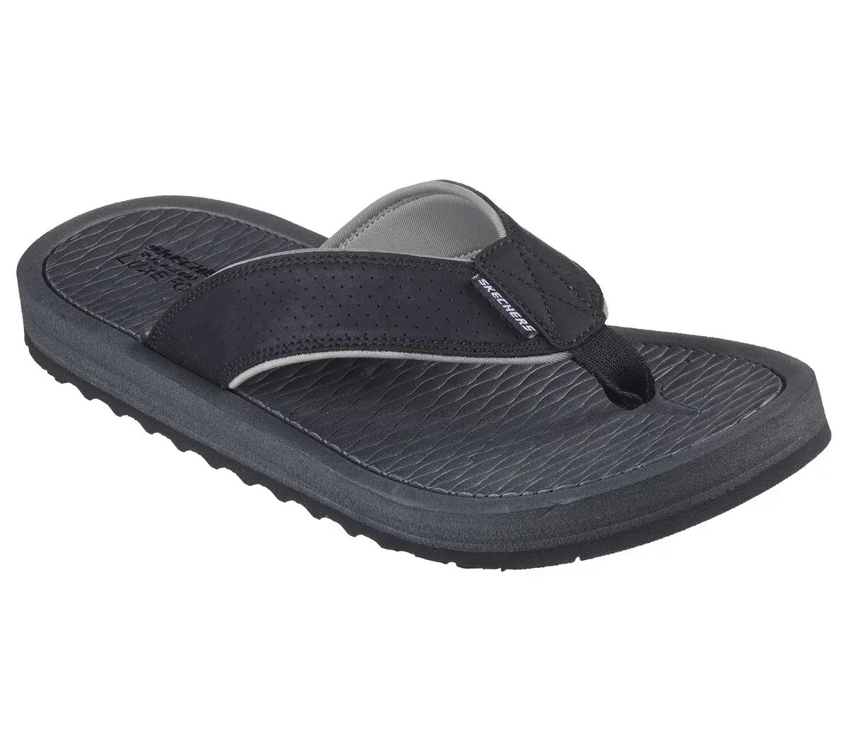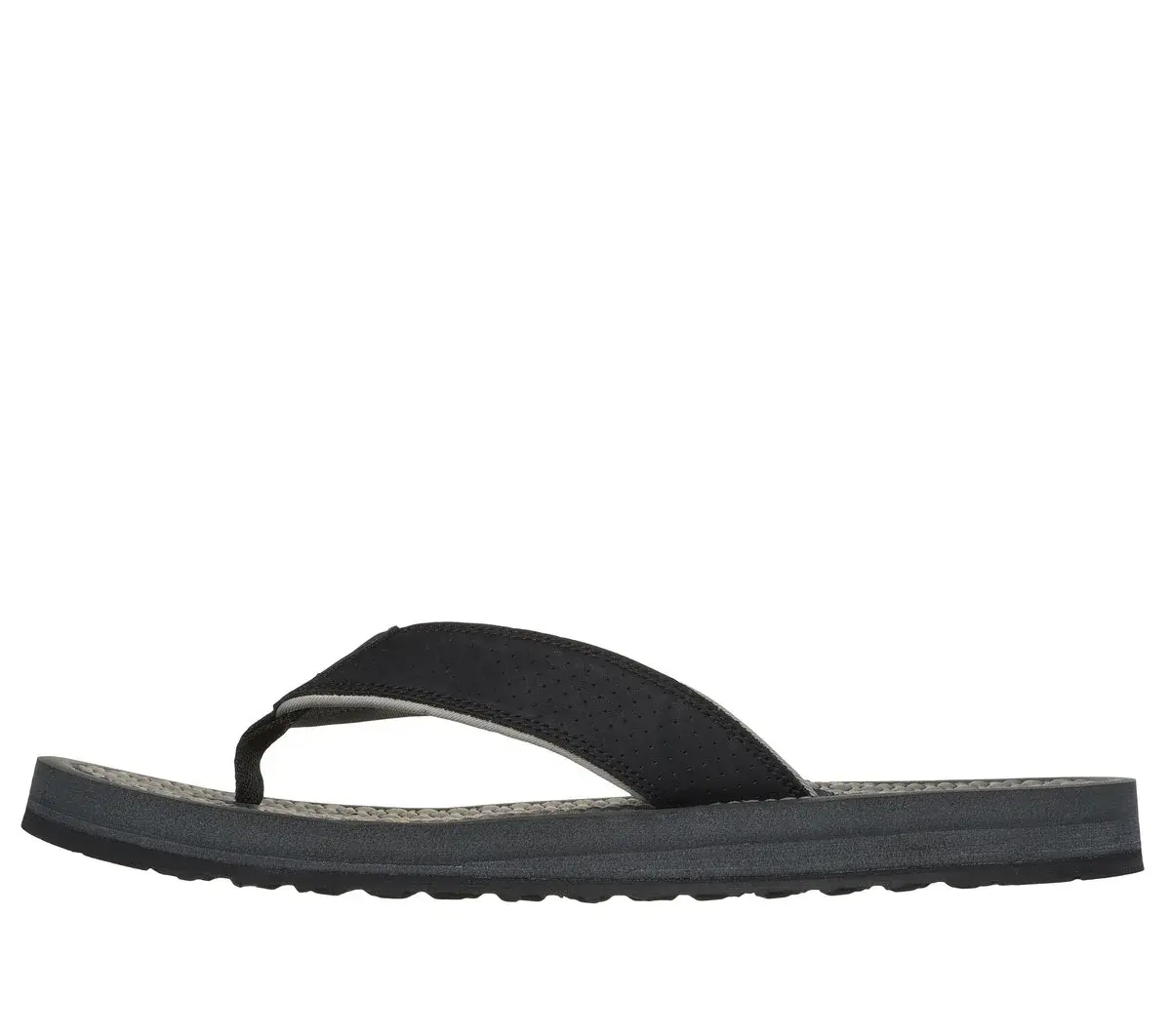 Achieve relaxation nirvana with Skechers Relaxed Fit®: Tantric – Copano. This roomy 3-point thong sandal features a perforated faux leather upper with a contoured Luxe Foam® footbed.