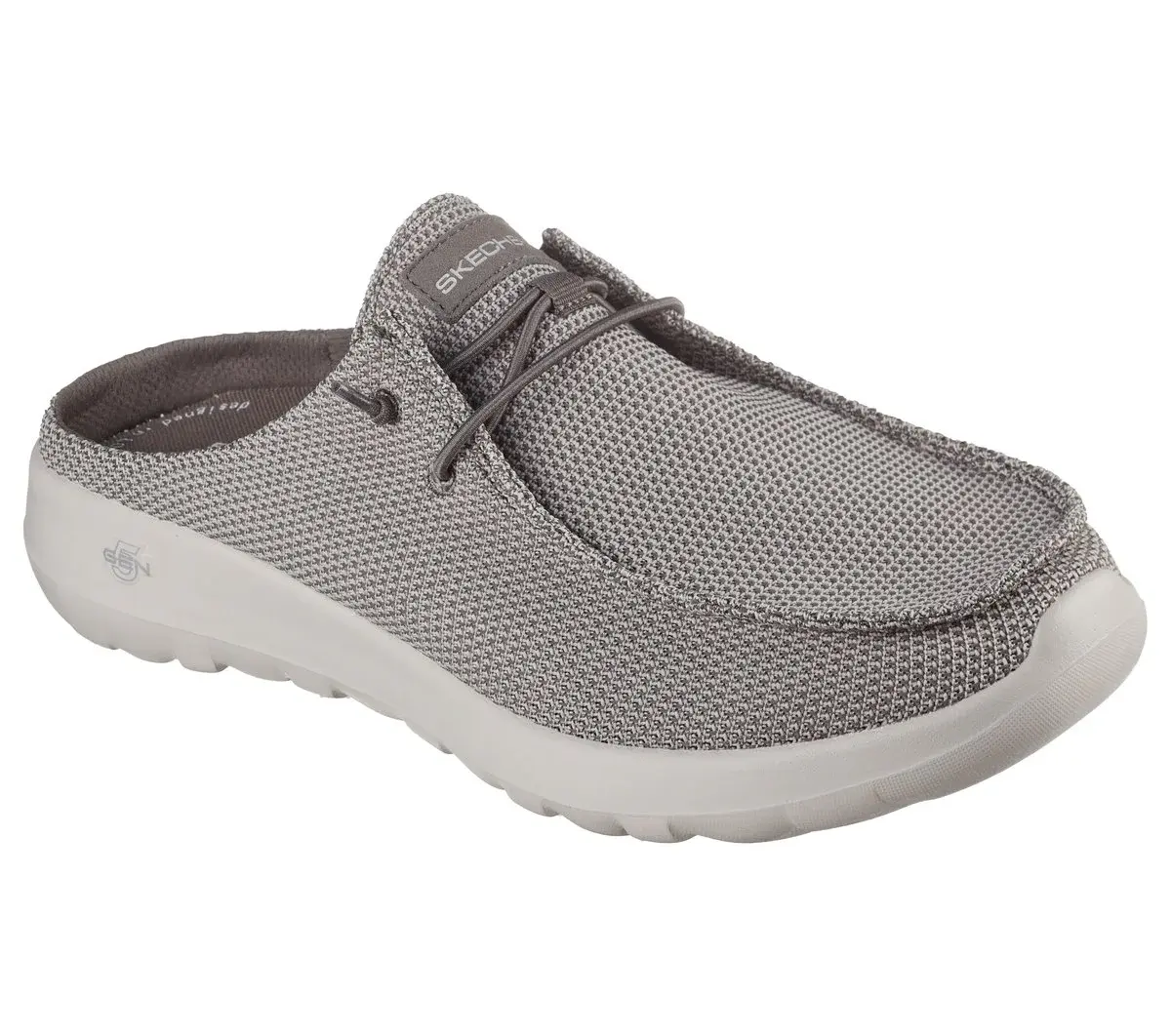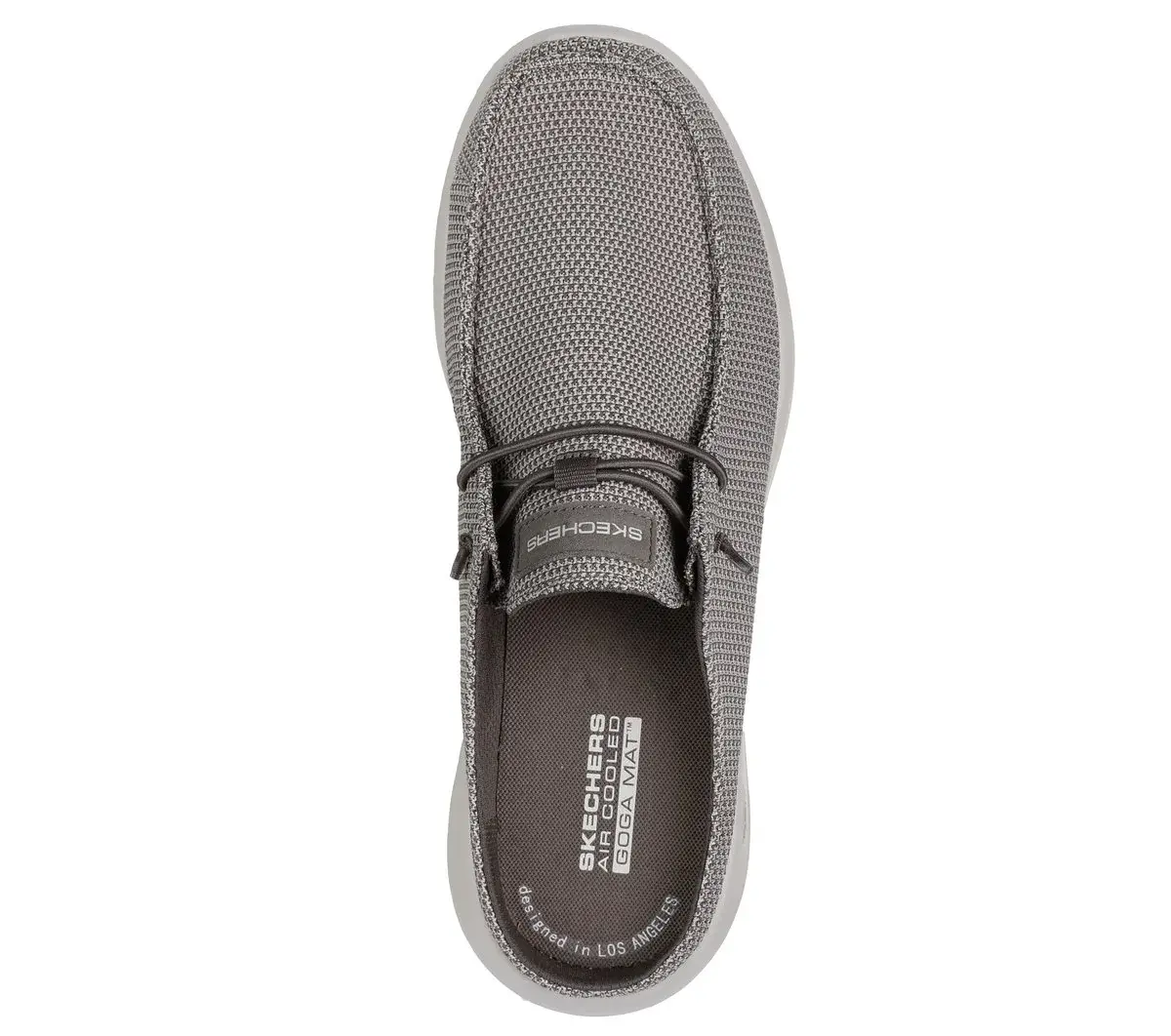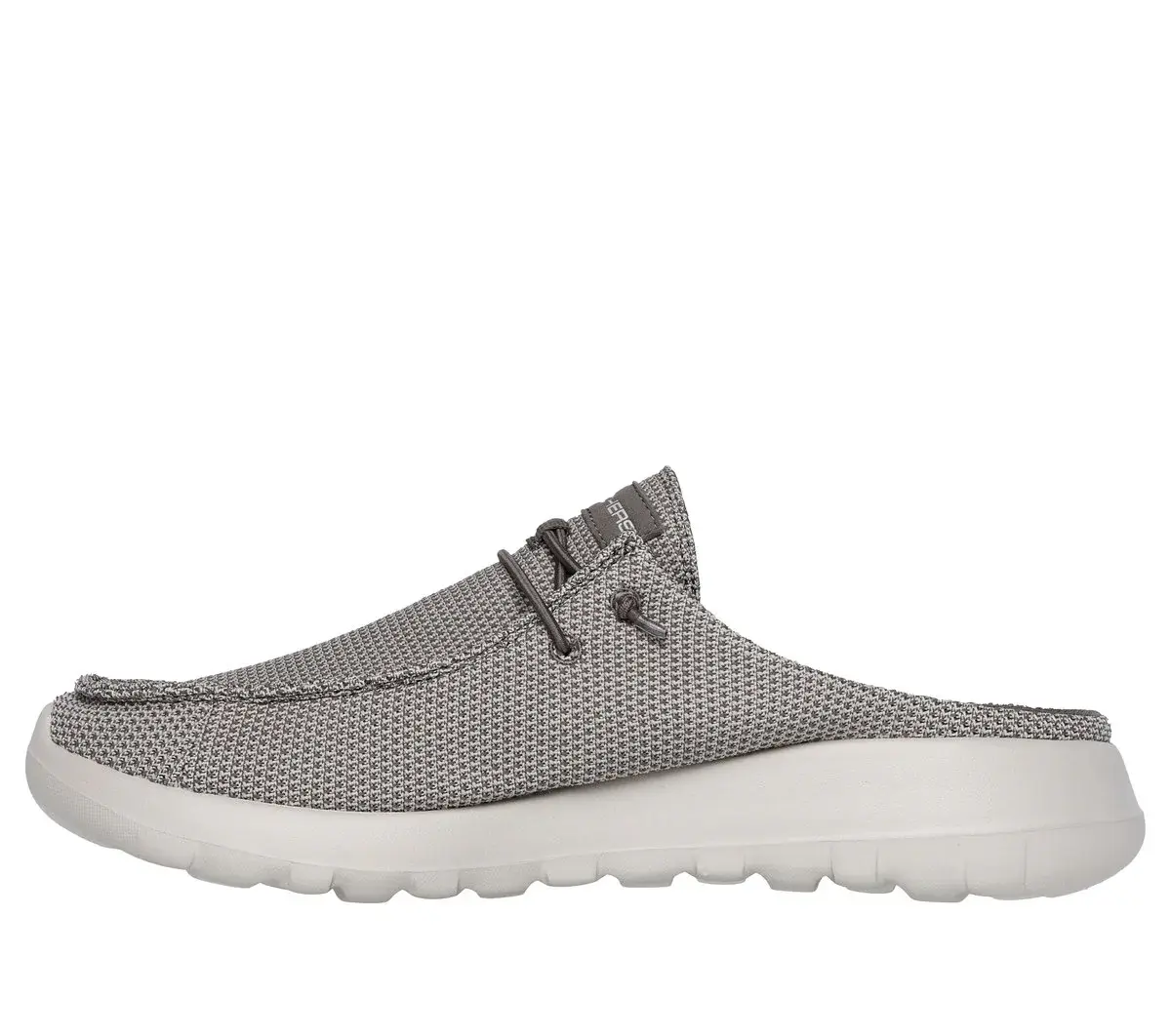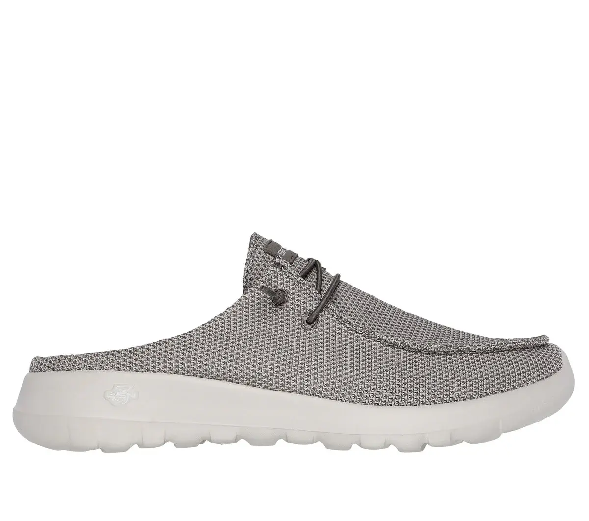Step up your all day, everyday style in comfort wearing Skechers GO WALK Max™ – Kanu. This open-back mule features a fabric upper with a moc toe, tied-off deco laces, a breathable Skechers Air-Cooled Goga Mat™ footbed, and lightweight 5-GEN® midsole cushioning.