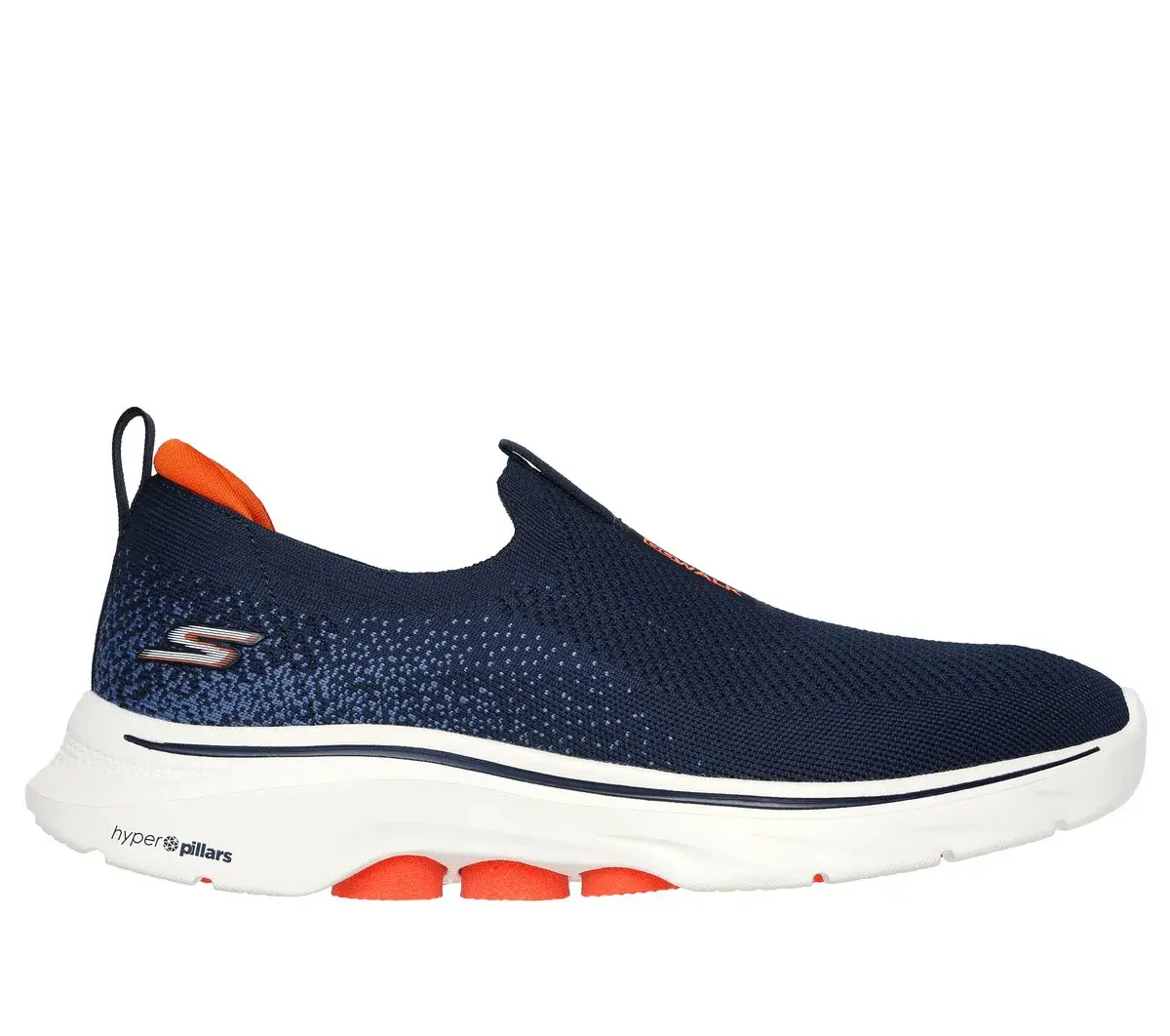 Walk in easy-wearing comfort with Skechers GO WALK 7™. This laceless walking design features an engineered Stretch Fit® upper with a Skechers Air-Cooled Goga Mat™ insole, lightweight ULTRA GO® cushioning, and high-rebound Hyper Pillar Technology™ for added support.