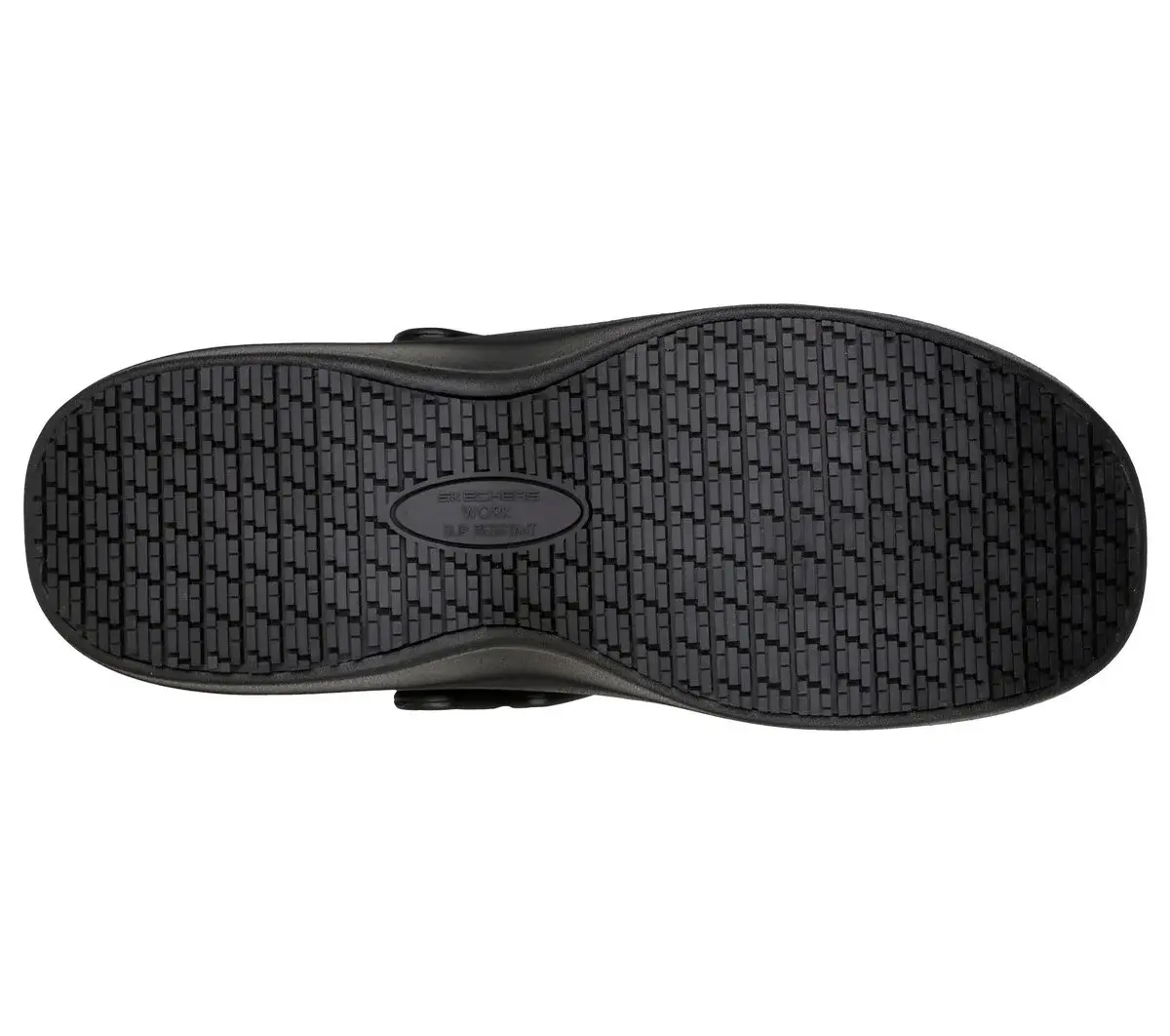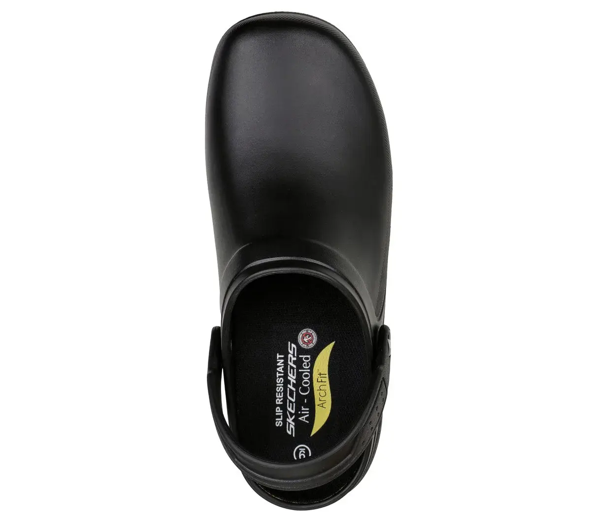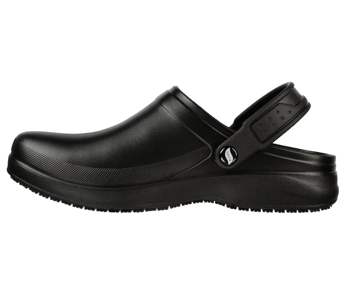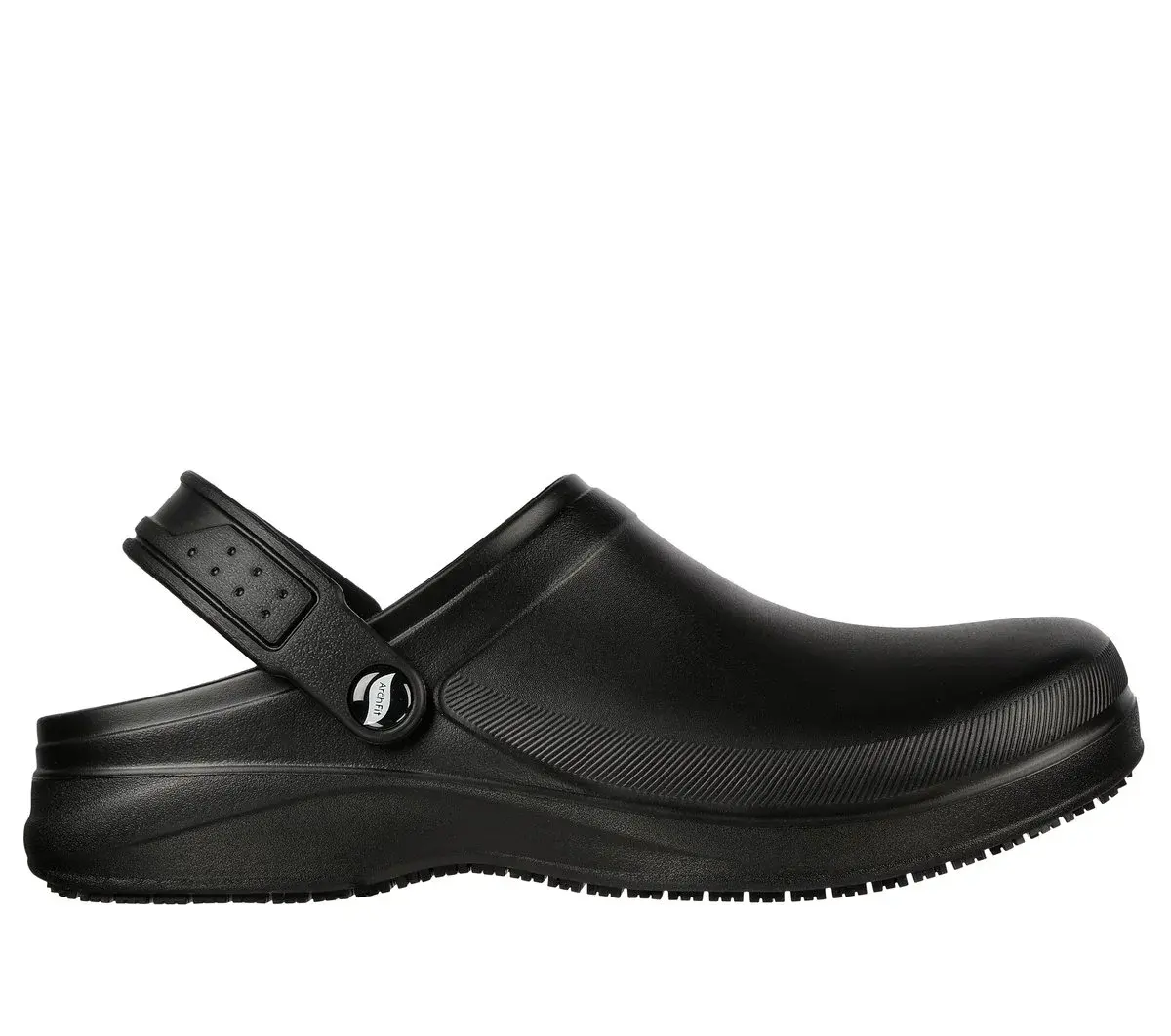 Slip on supportive comfort before starting your prep work with Skechers Work™ Arch Fit®: Riverbound SR. This slip-resistant clog has been granted the APMA Seal of Acceptance and features a sculpted flexible EVA upper with a removable Arch Fit® contoured footbed and a convertible heel sling strap.