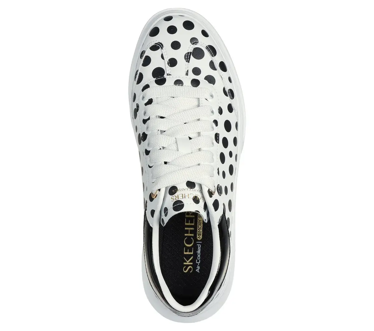 Spot the trend with the iconic Skechers Cordova Classic – Definitely Dotted. This lace-up fashion sneaker design features a synthetic duraleather upper with an allover polka dot print and a cushioned Skechers Air-Cooled Memory Foam® insole.