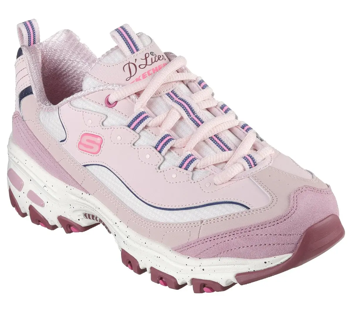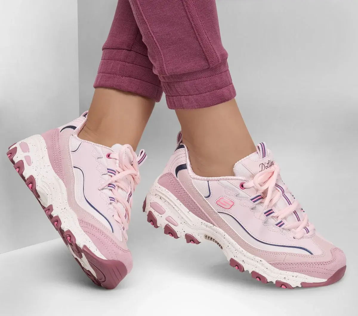 Strut your stuff in Colorful Comfort® wearing Skechers D’Lites® – Bold Views. This fashion lace-up sneaker features a synthetic and mesh upper with suede overlays and a cushioned Skechers Air-Cooled Memory Foam® insole.