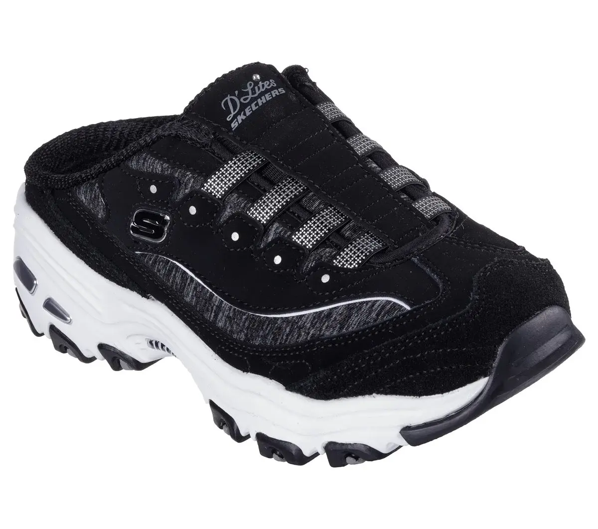 - Skechers D’Lites® sporty slip-on fashion sneaker mule design