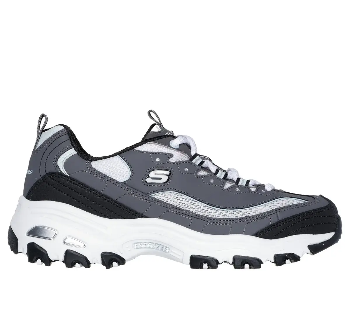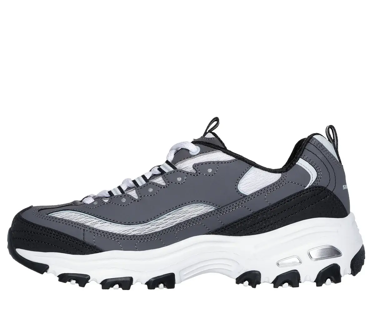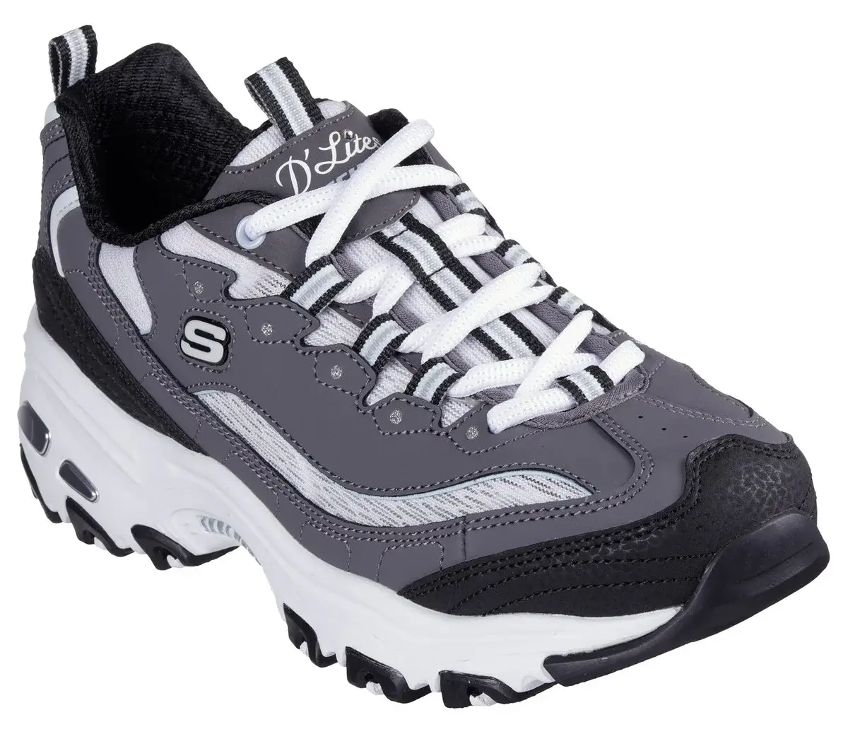 Put your best foot forward in a revitalized classic look with Skechers D’Lites®. This sporty fashion lace-up features a breathable mesh and leather overlay upper with a cushioned Skechers Air-Cooled Memory Foam® insole.