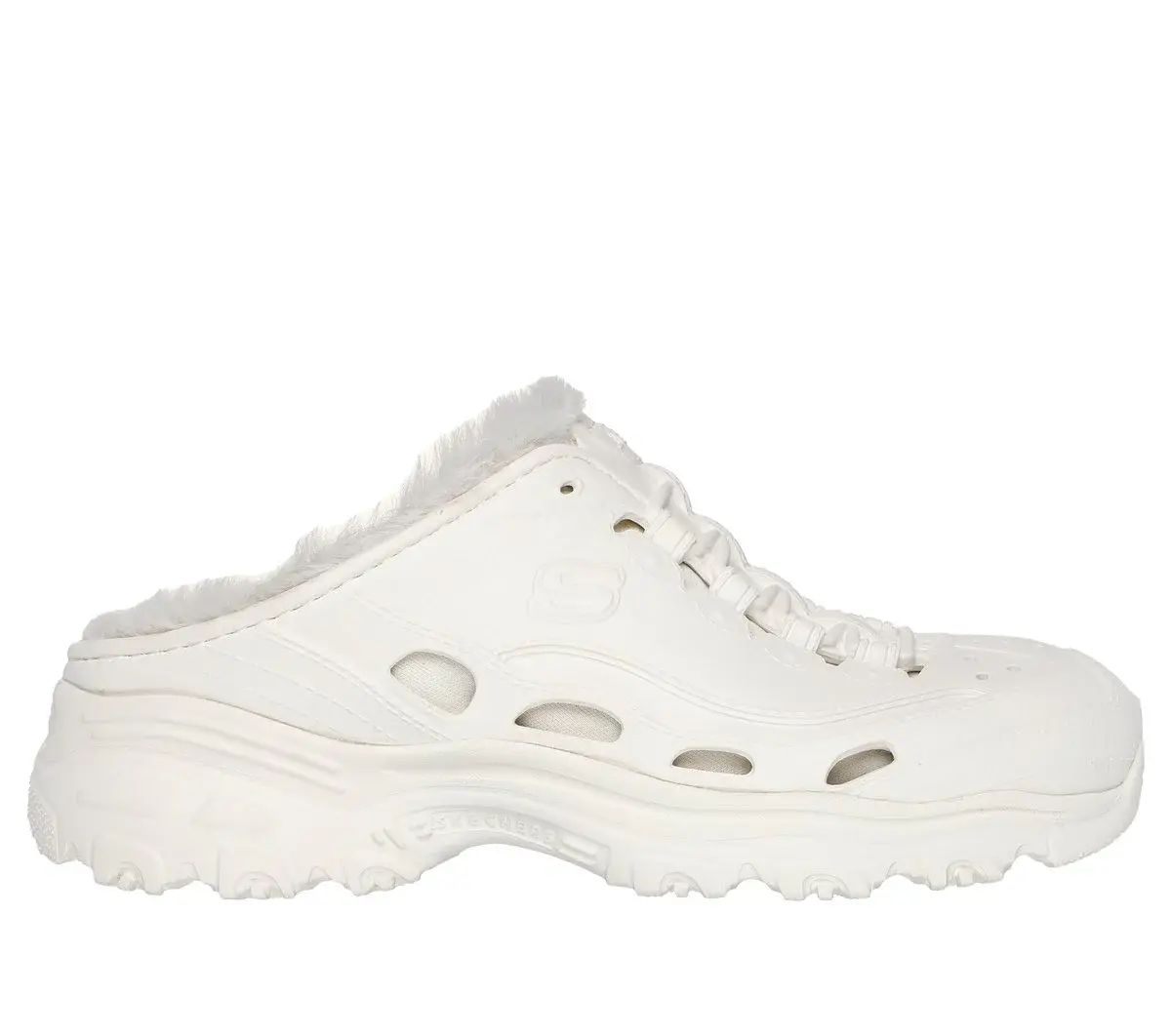 Take it easy in icon-inspired style wearing Skechers Foamies®: D’Lites 2.0 – Warm & Cozy. This open-back mule sneaker features a Foamies® EVA sculpted upper with faux fur lining and is machine washable.