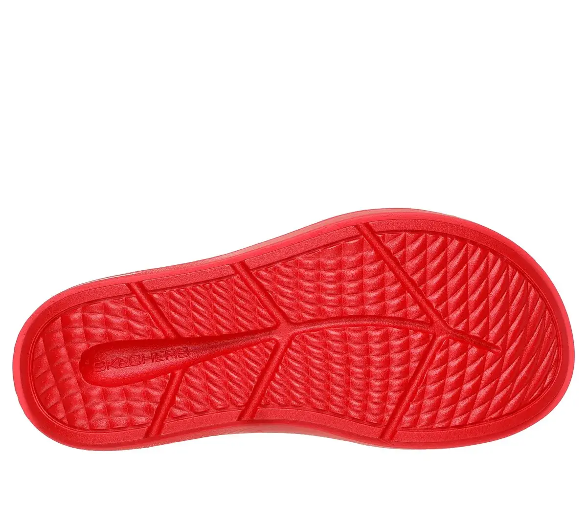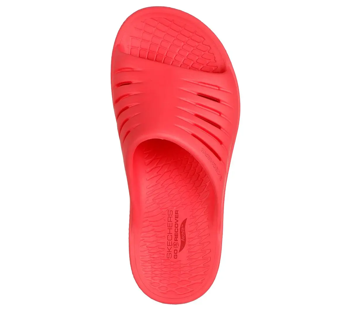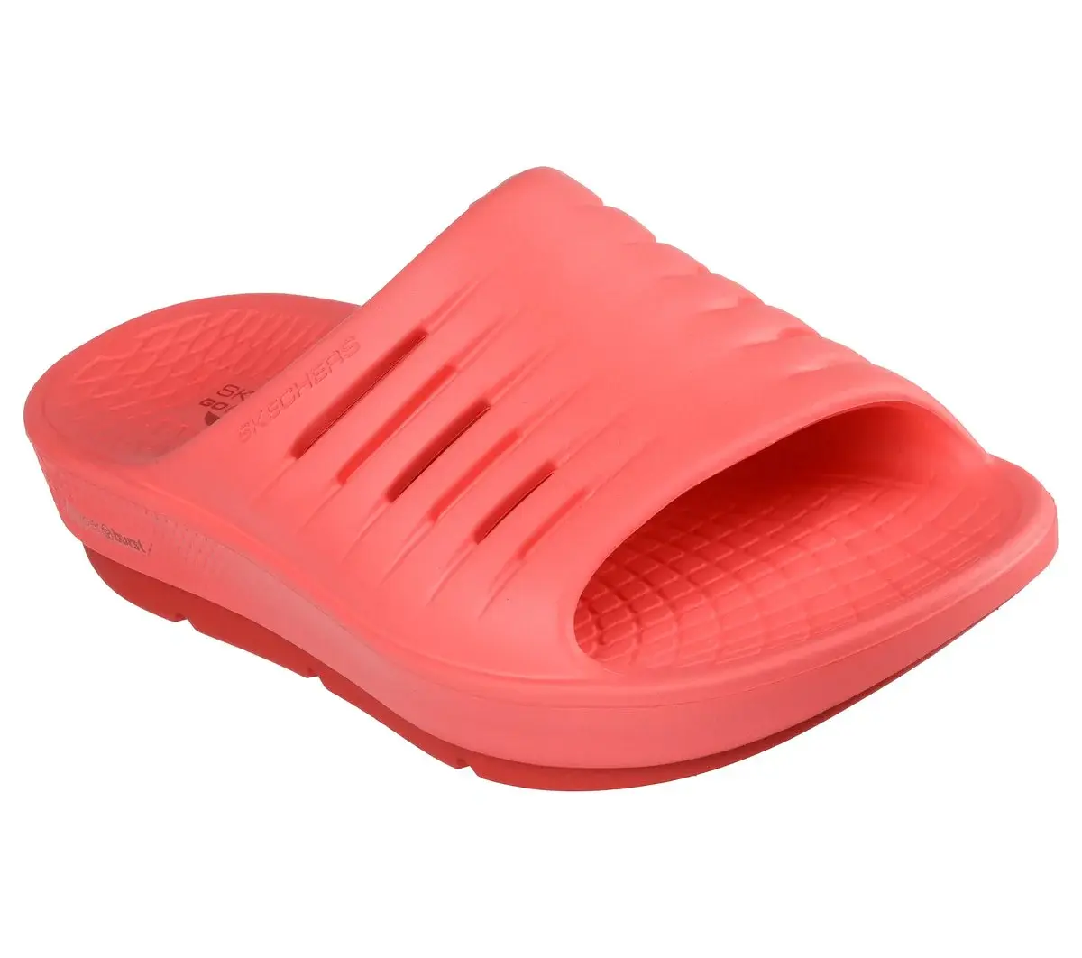 Relax in specialized comfort and style wearing Skechers GO RECOVER® Refresh. This athletic recovery slide sandal has been granted the APMA Seal of Acceptance and features a synthetic upper with linear perforations and premium HYPER BURST® foam with Arch Fit® support that redistributes pressure for impact reduction.
