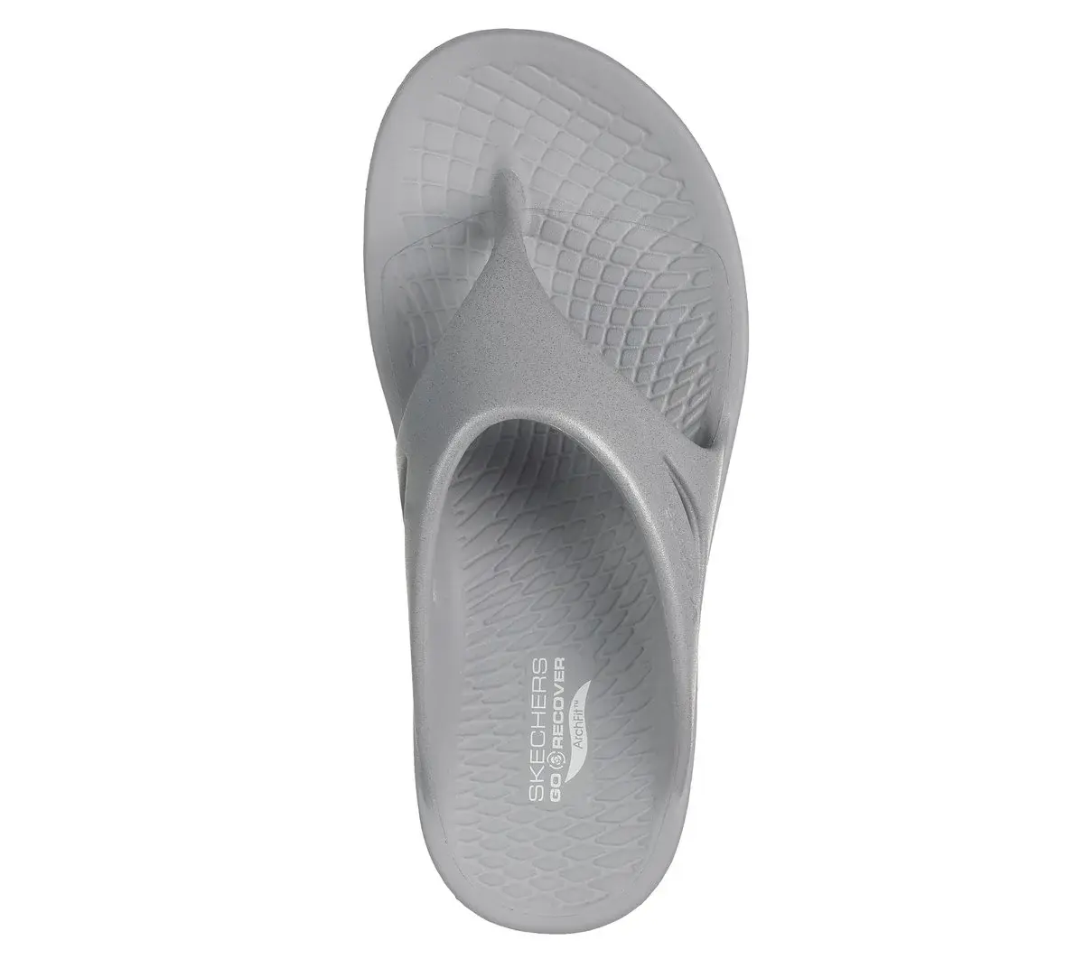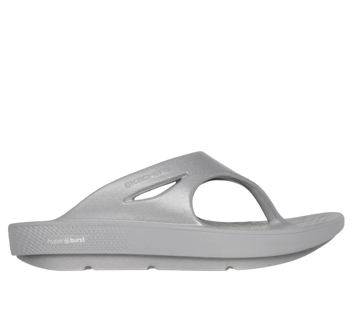 Super Critical® Relax in specialized comfort and style wearing Skechers GO RECOVER® Refresh – Glitzy. This athletic recovery thong sandal has been granted the APMA Seal of Acceptance and features a sparkly synthetic upper with premium Hyper Burst® foam, plus Arch Fit® support and a Lux Foam + contoured footbed.