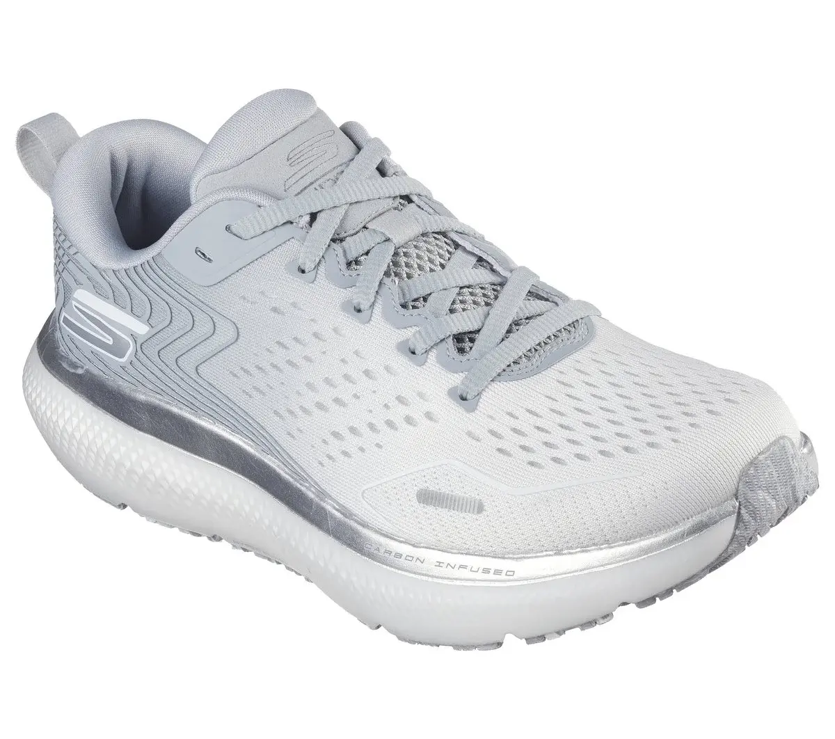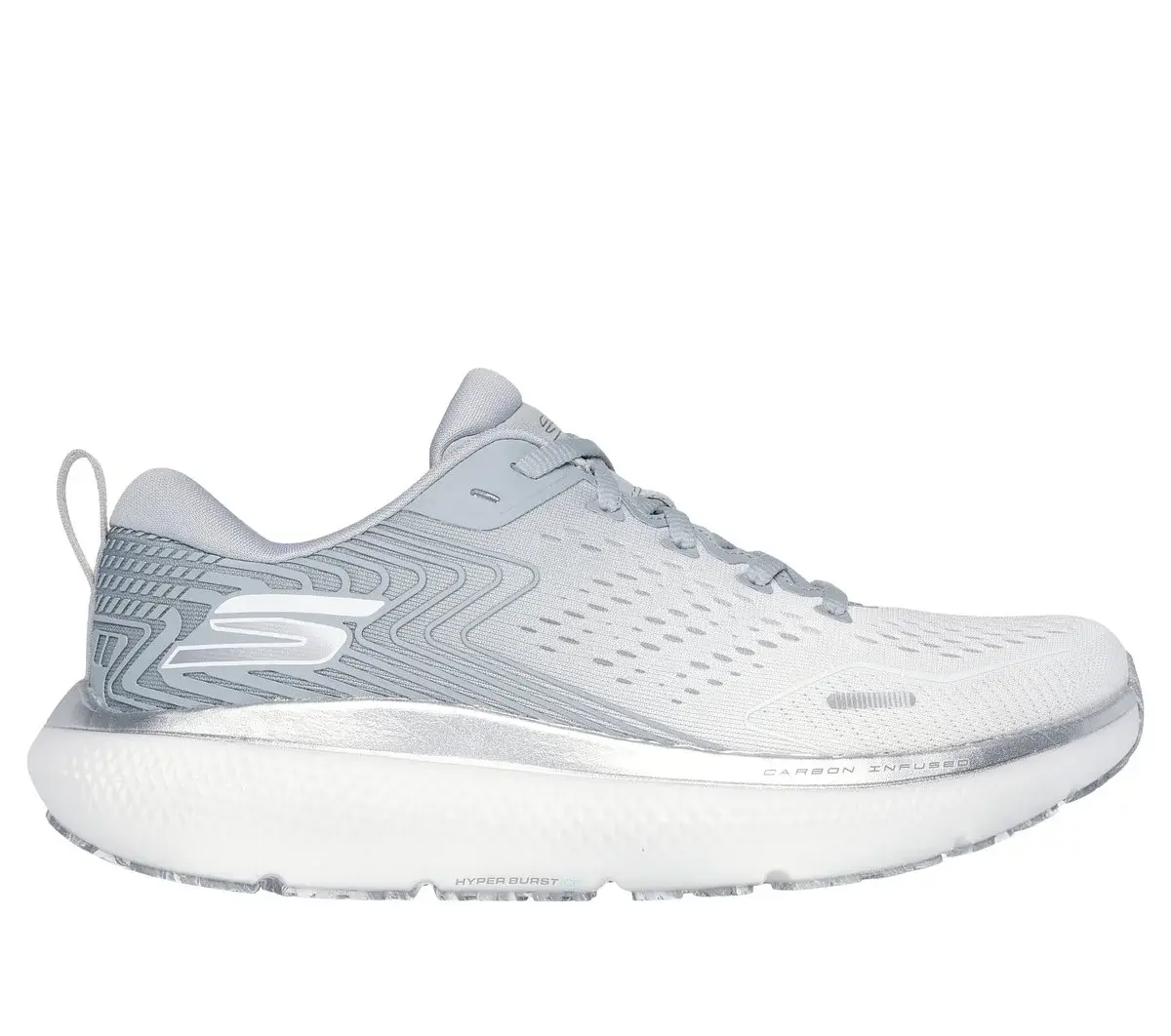 Get ready to move in lightweight supportive comfort with Skechers GO RUN Ride 11™. This carbon-infused lace-up trainer features a breathable engineered mesh and synthetic upper with a removable Skechers Arch Fit® insole, HYPER BURST ICE™ cushioning with HYPER ARC™, and a Goodyear® Performance Outsole.