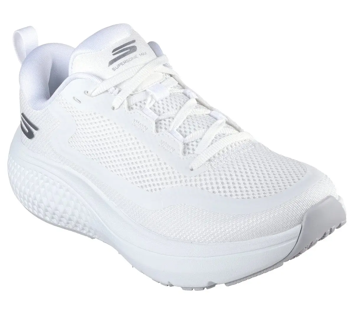 Comfort and running technology combine in Skechers GO RUN® Supersonic Max™. This running design features a lightweight athletic mesh upper with lightweight ULTRA GO® cushioning, a Goga Max technology insole, and a Hyper Arc™ carbon infused forefoot winglet plate.